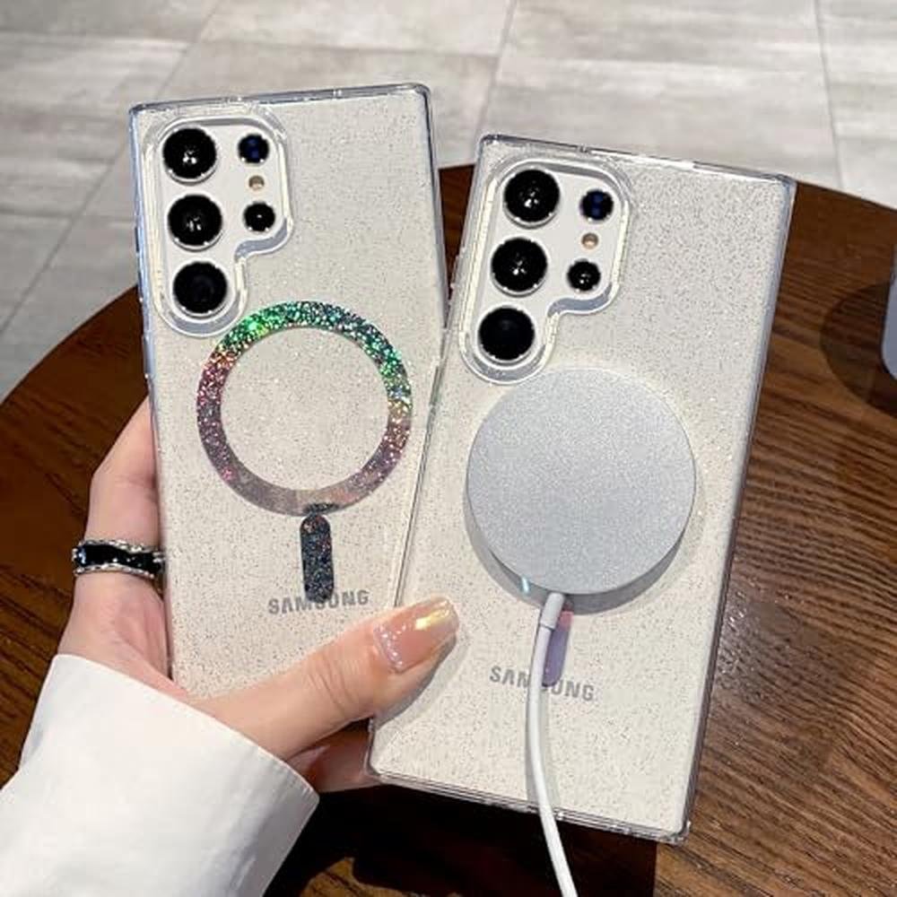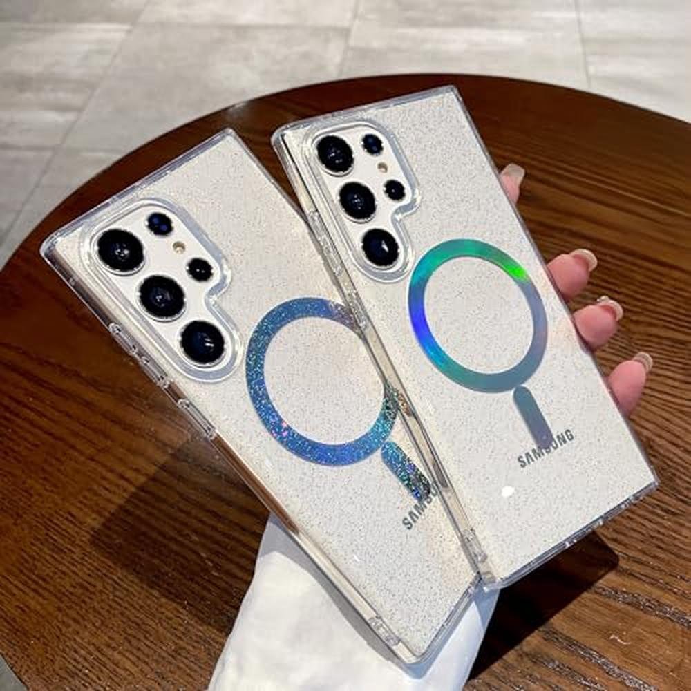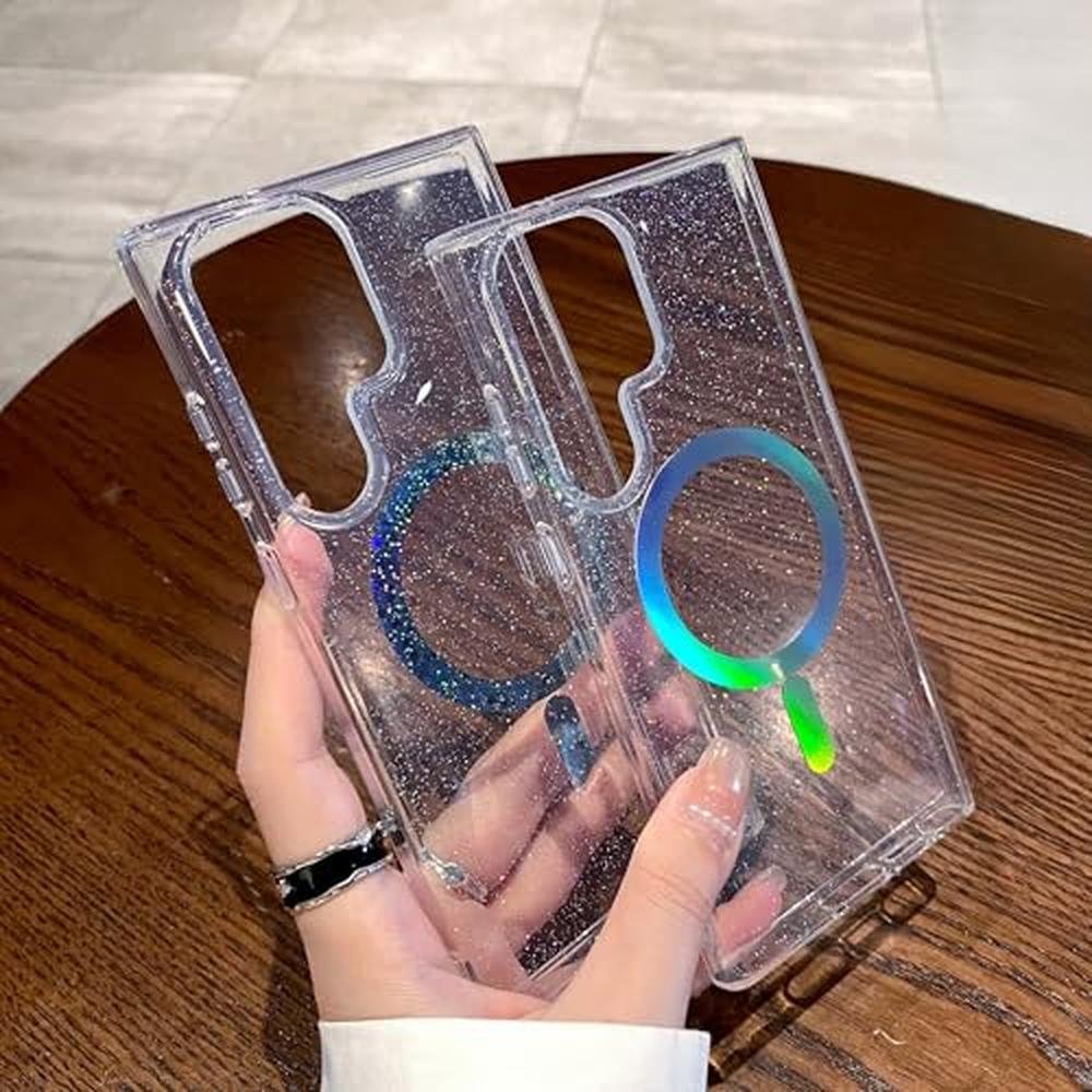 for Samsung Galaxy S25 Ultra Case Compatible with Magsafe Magnetic Bling Glitter Clear Shiny Sparkle Iridescent Holographic Luxury Shockproof Soft Acrylic Phone Cover for Women Men (Laser Star)