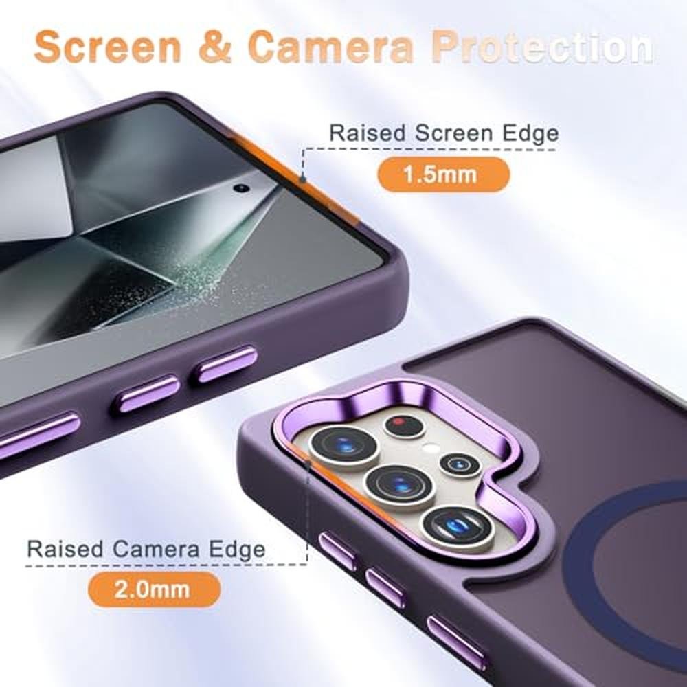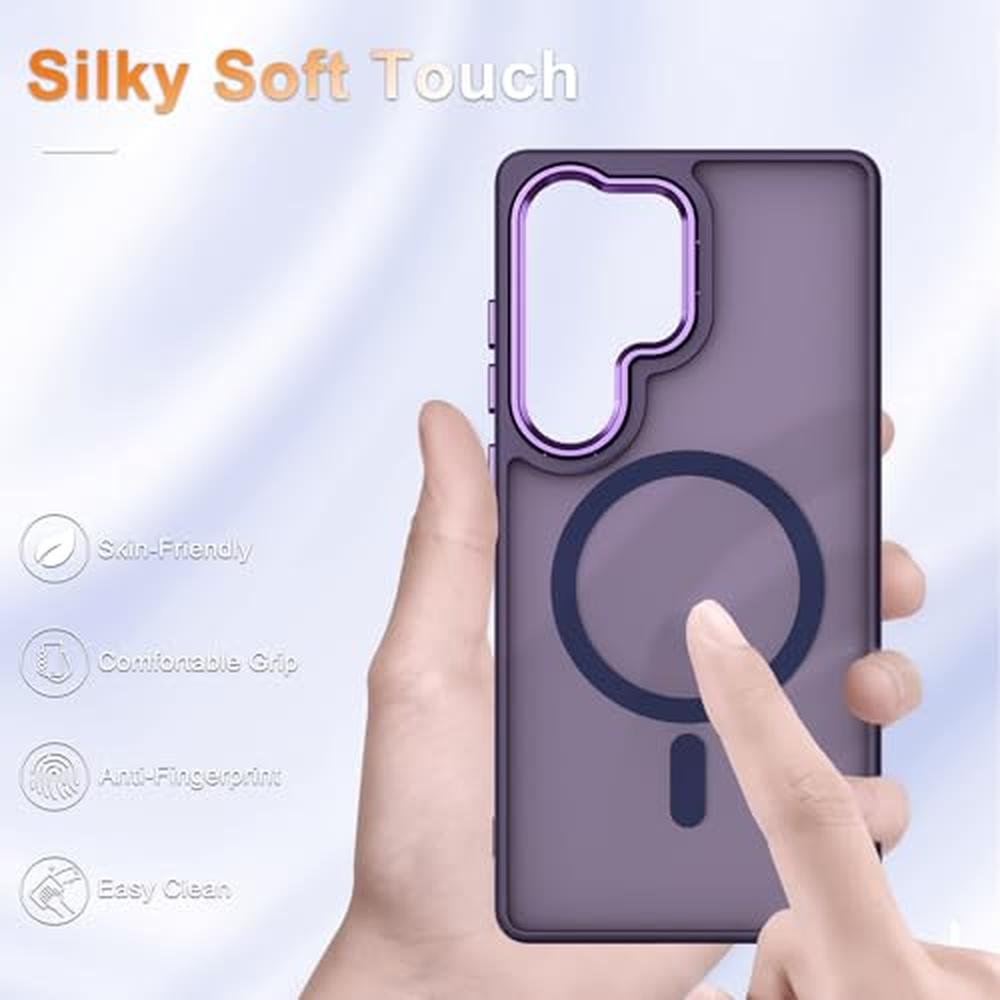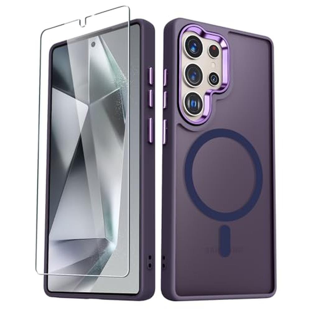 for Samsung Galaxy S25 Ultra Case, Matte Magnetic Phone Case with 1 Screen Protector, Support for Magsafe, Translucent Frosted Shockproof Protective Cover for Samsung Galaxy S25 Ultra, Purple