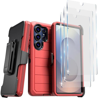 Experience the pinnacle of protection and style for your Samsung Galaxy S25 Ultra with our premium case, featuring a durable belt clip holster and a 3-pack of tempered glass screens in a sleek red and black design. As a Samsung Galaxy user, you know the importance of safeguarding your device, and our case is specifically designed to fit the Samsung Galaxy S25 Ultra 5G, providing a snug and secure fit. Whether you're looking for Samsung Galaxy S25 Ultra deals or comparing prices, such as the Samsung Galaxy S24 price in India or the Samsung Galaxy S23 Ultra price, our case is an essential accessory to complement your device. With its rugged design and premium materials, our case is perfect for those who want to protect their investment.