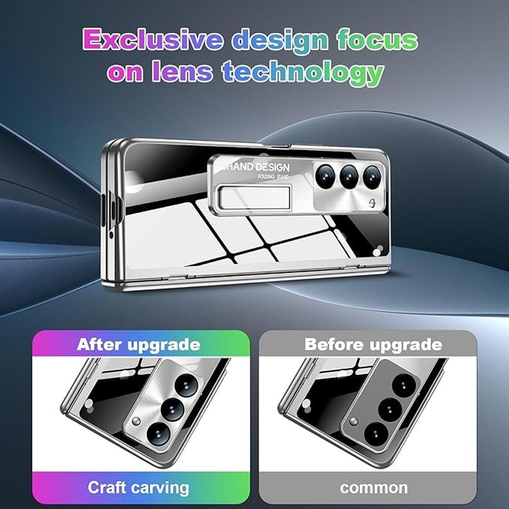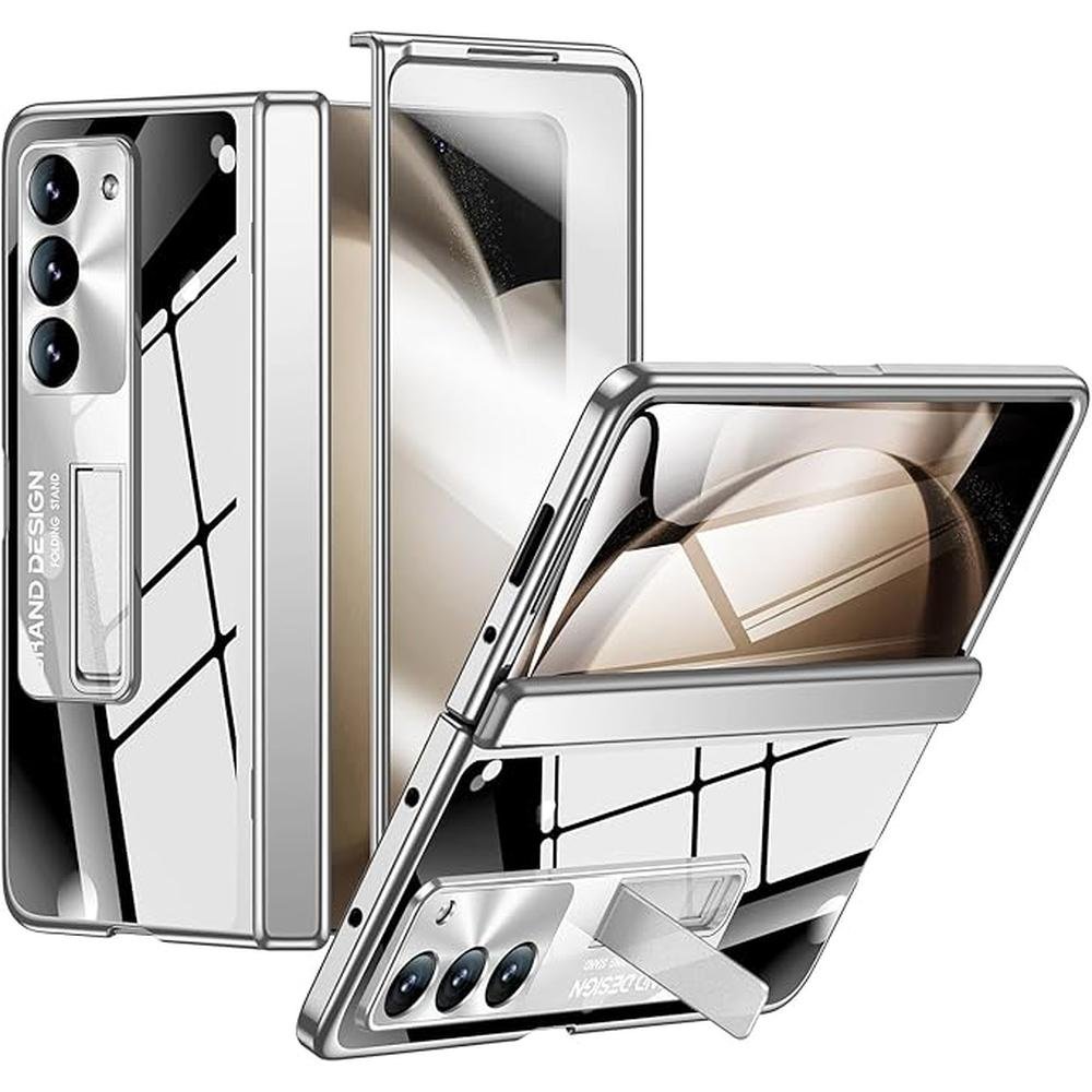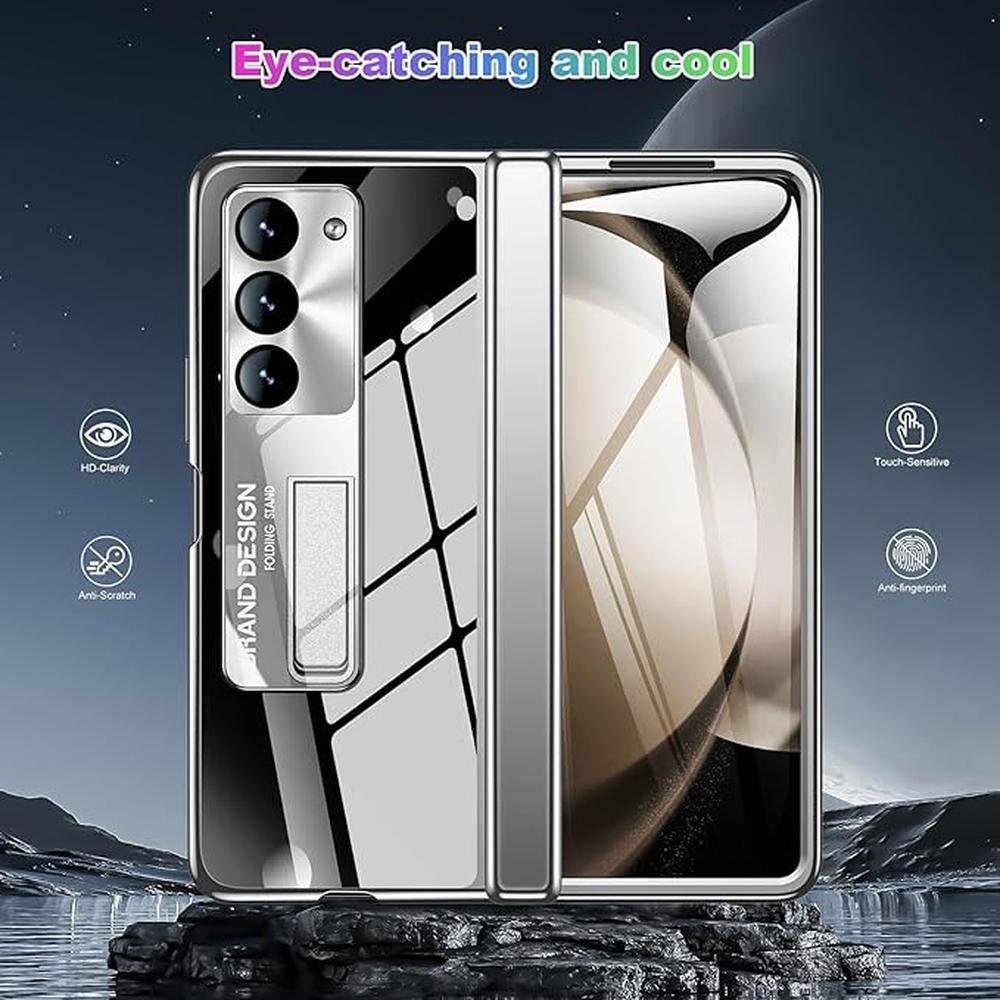 for Samsung Galaxy Z Fold 5 Cover: Sleek Clear Electroplated Stand Protective Phone Case - Anti-Scratches Elegant Luxury Case for Galaxy Z Fold 5 5G 2023 (FOLD 5, Silver)