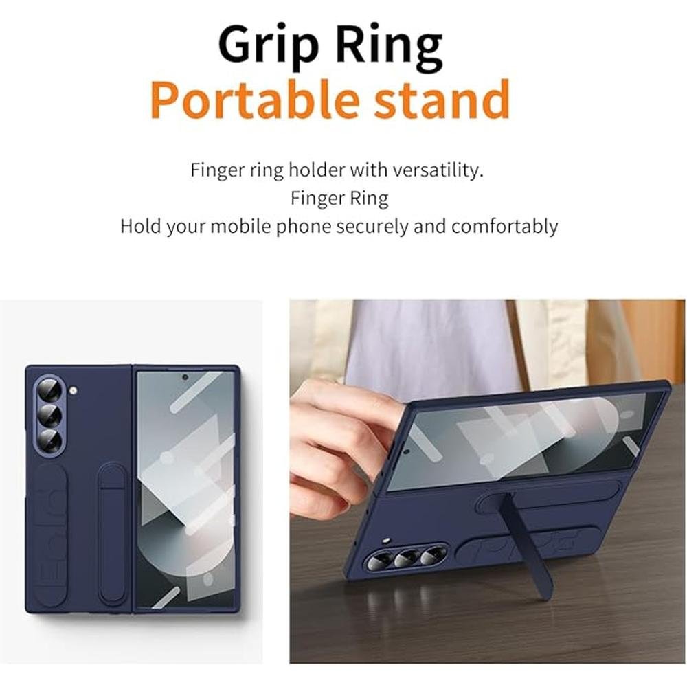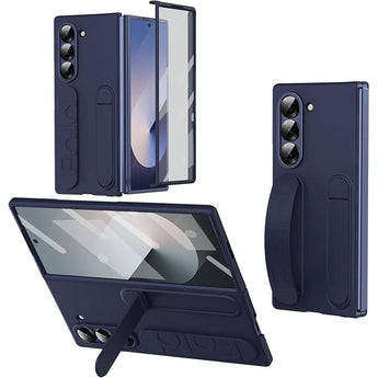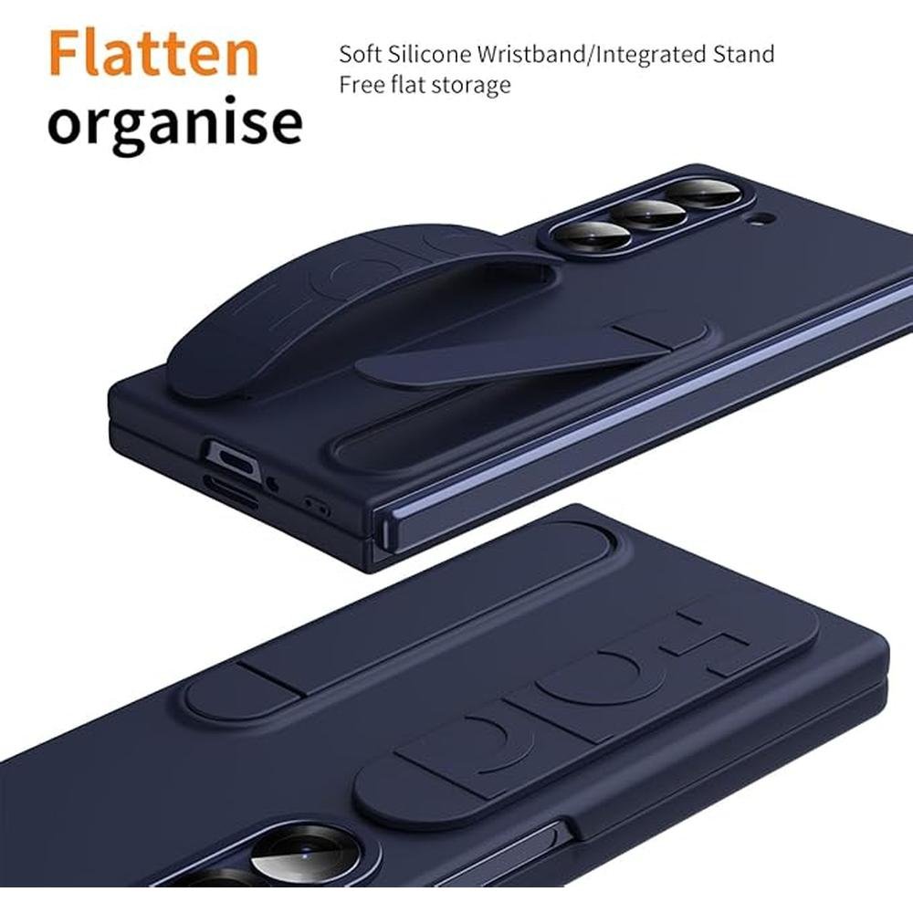for Samsung Galaxy Z Fold 6 Protect Case with Wristband Stand,Bulit-in Screen & Lens Protection Shockproof Full Body Drop Fall Protection.(Blue)