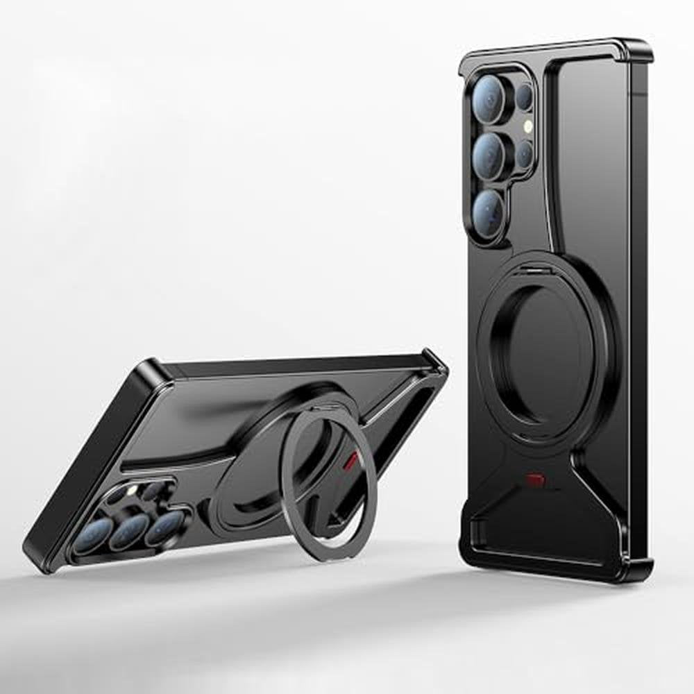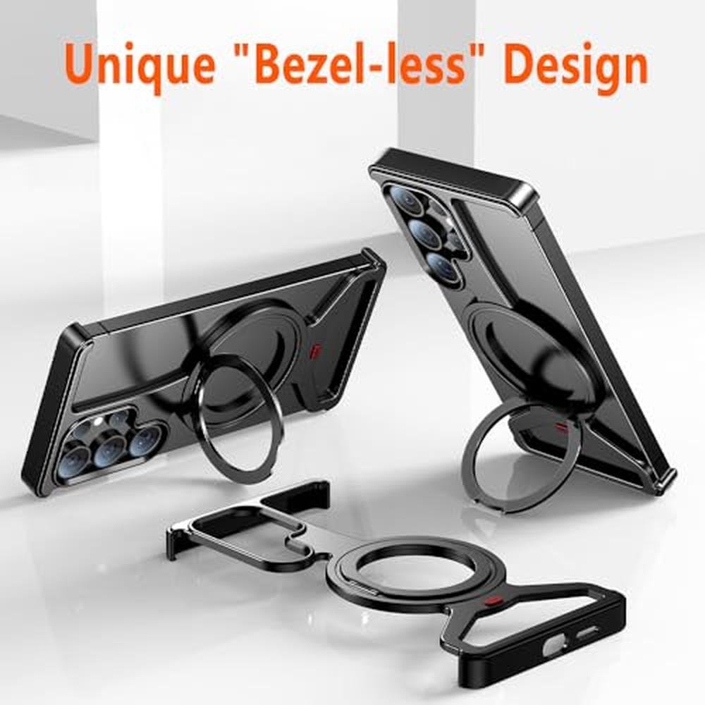 Frameless Case for Samsung S25 Ultra,[360 Rotatable Ring Kickstand] Galaxy S 25 Ultra Magnetic Phone Case, Minimalist Aluminum Metal Bumper Slim Shockproof Cover for Men,Titanium Black