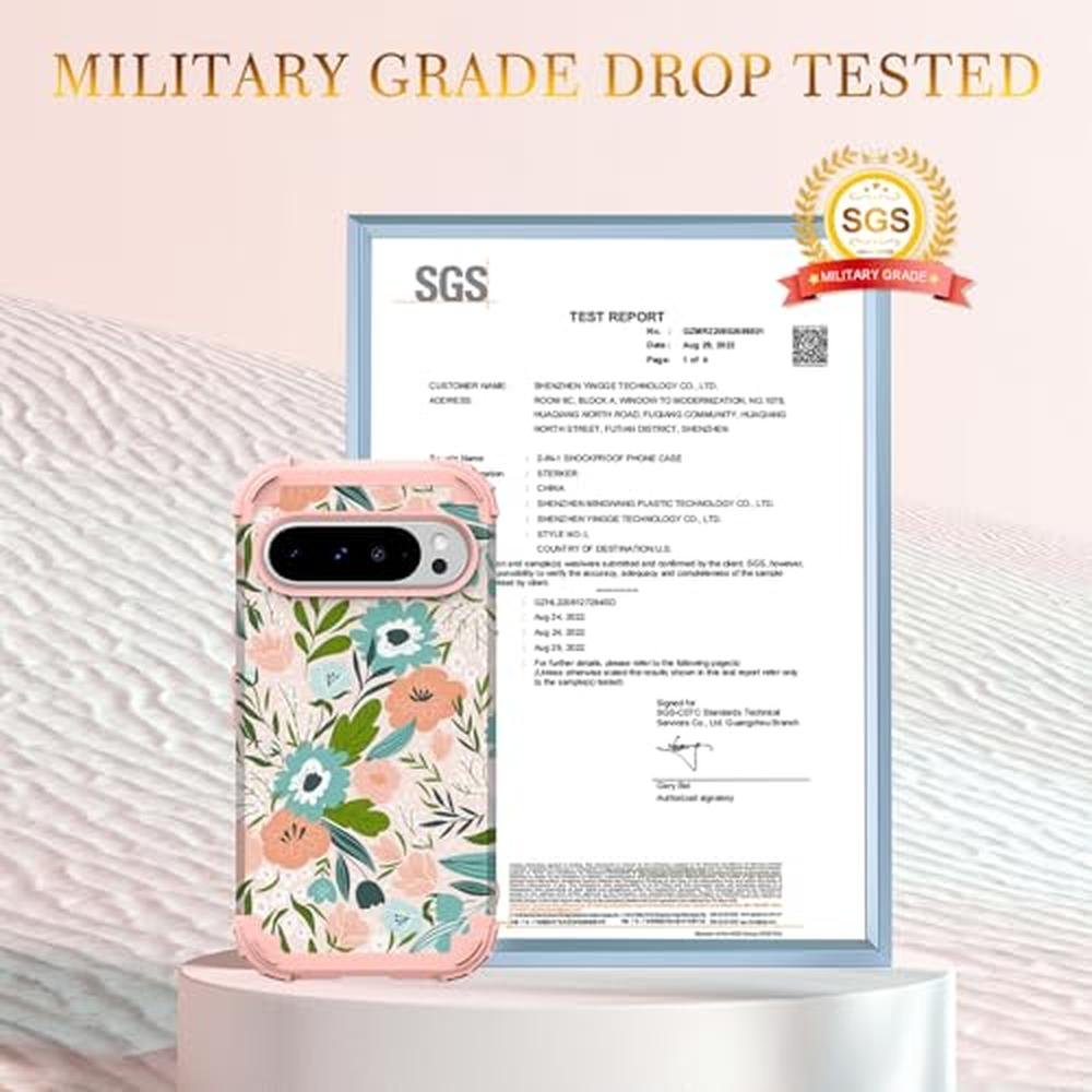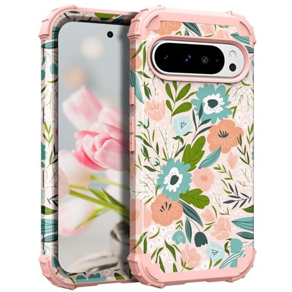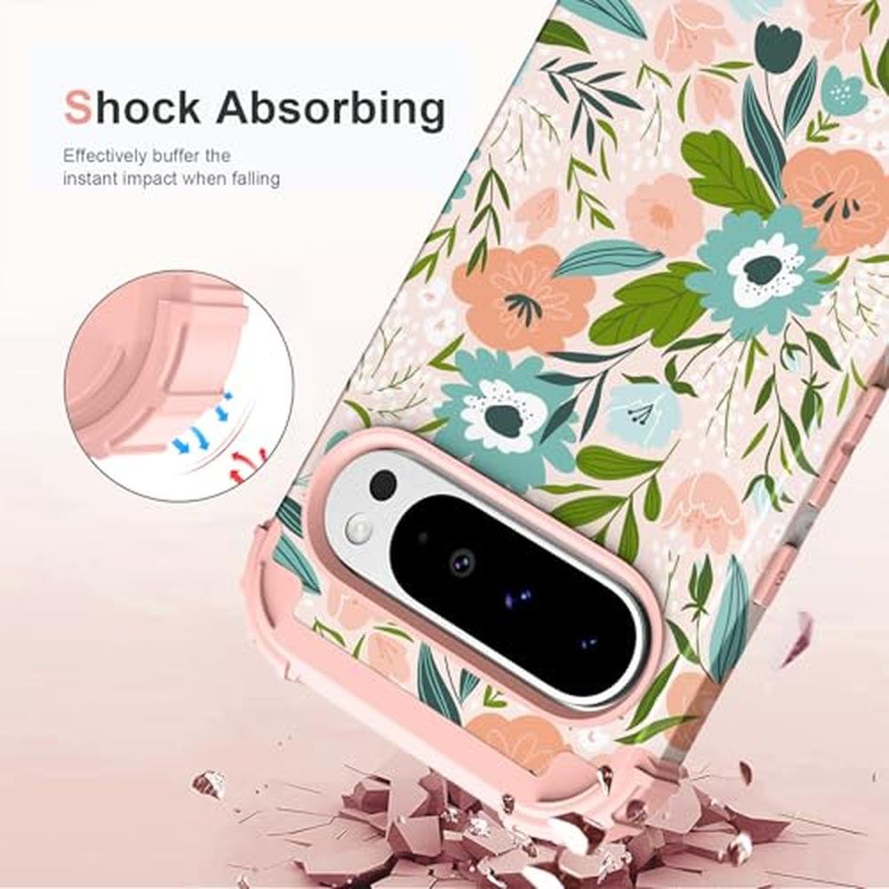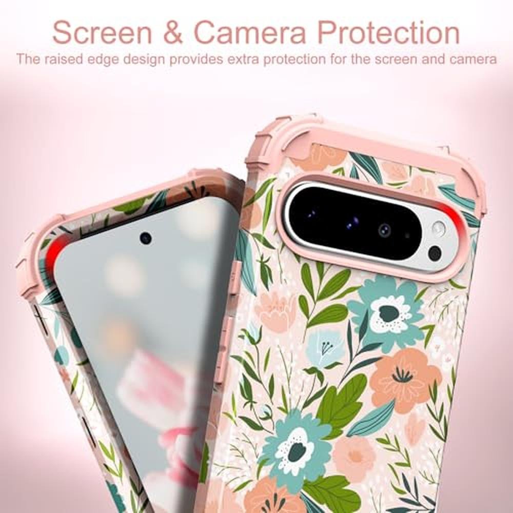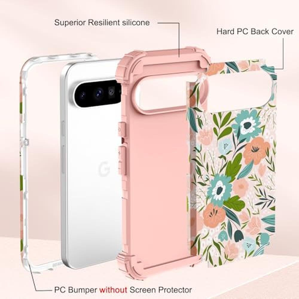 Hocase for Google Pixel 9 Pro XL Case, Shockproof Heavy Duty Protection Hard Plastic+Silicone Rubber Bumper Hybrid Protective Case for Google Pixel 9 Pro XL 6.8" 2024 - Pink Flowers