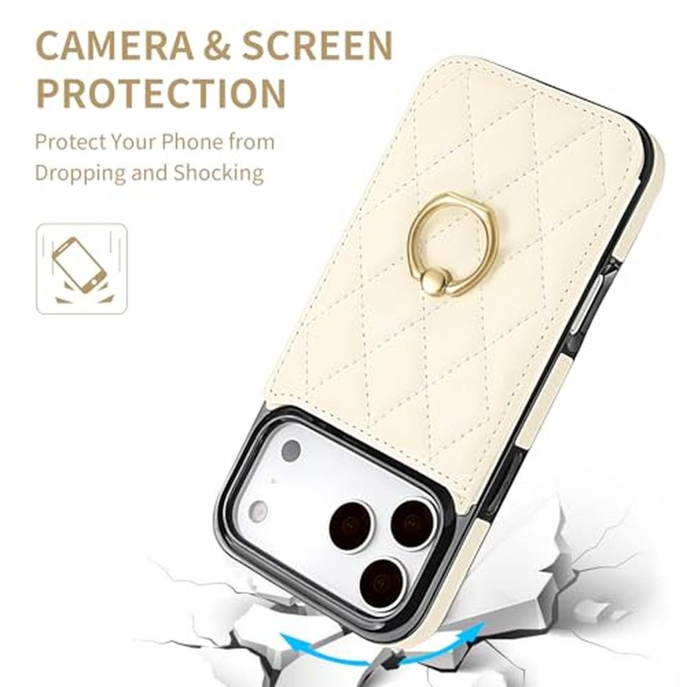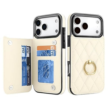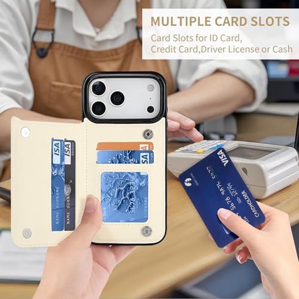 Compatibility: This wallet case only compatible with iPhone 17 Pro Max(6.9 inch Display, Released in 2025).For iPhone 17 Pro Max Card holder Case: Card slots for ID cards, credit cards, or some cash without taking a purse/bag when you go out.Kickstand Feature: Built-in 360 degree adjustable ring holder can be used as a stand to prop up the phone, also easy to grip on your finger.Full-Frame Protection and Shockproof : Covers all four corners of your Phone and raise lips and camera bevel help prevent surface scratches.Premium PU Leather: The card slots case is made from 100% handcrafted and premium leather, soft PU material brings very comfortable touch feel.Full-Frame Protection and Shockproof: This case provides reinforced 360-degree protection. Raised bezels around the corners add an extra layer of protection to your phone.Card Holder Cases : Card slots for ID card, credit cards or some cash, without taking purse to outdoor.Kickstand Feature : Built-in 360 degree adjustable ring holder to provide added security when holding the phone, kickstand function to provide hands-free viewing.