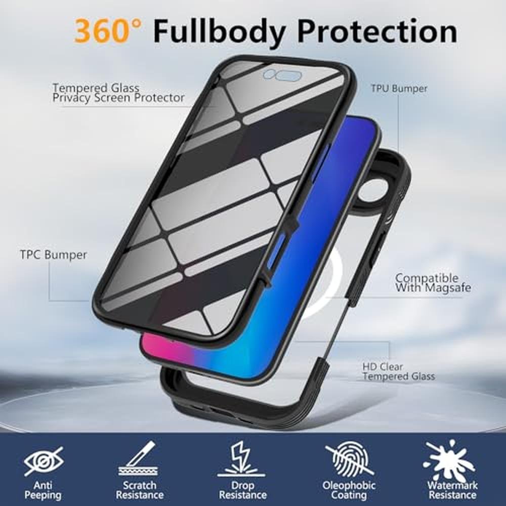 KEKBOXQ for iPhone 17 AIR Magnetic Case with Built-in Privacy Screen Protector,Compatible With MagSafe,360 Full Body Shockproof Anti-Spy Phone Cases Cover for iPhone 17air,Black