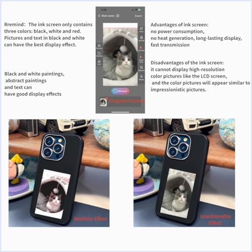 - New technology applicationNFC technology is used to transmit display content to the ink screen of the mobile phone case with low power consumption. After the transmission is completed, no energy is consumed. Even if the mobile phone is turned off or the mobile phone case is removed, the image can be displayed permanently.