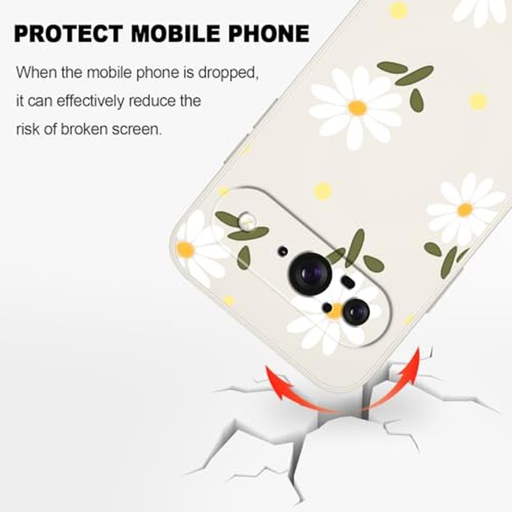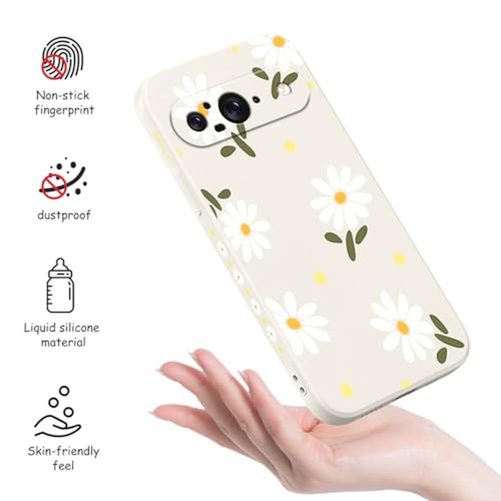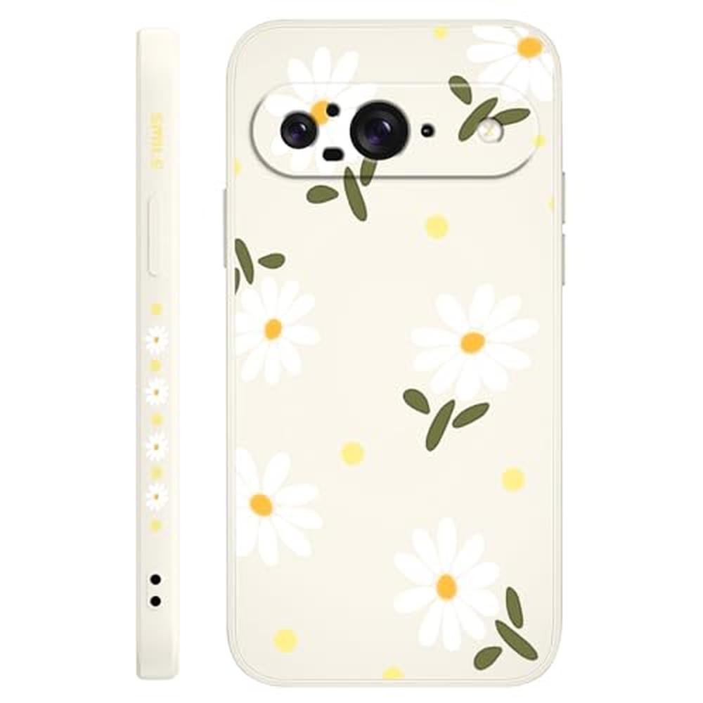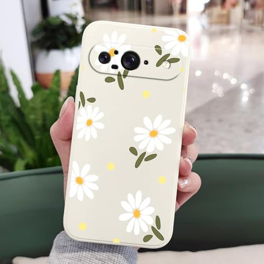 LEECG for Google Pixel 9 Case, Floral Pattern Design Slim Protective Phone Case Cover for Google Pixel 9 6.3", Daisy Rice White