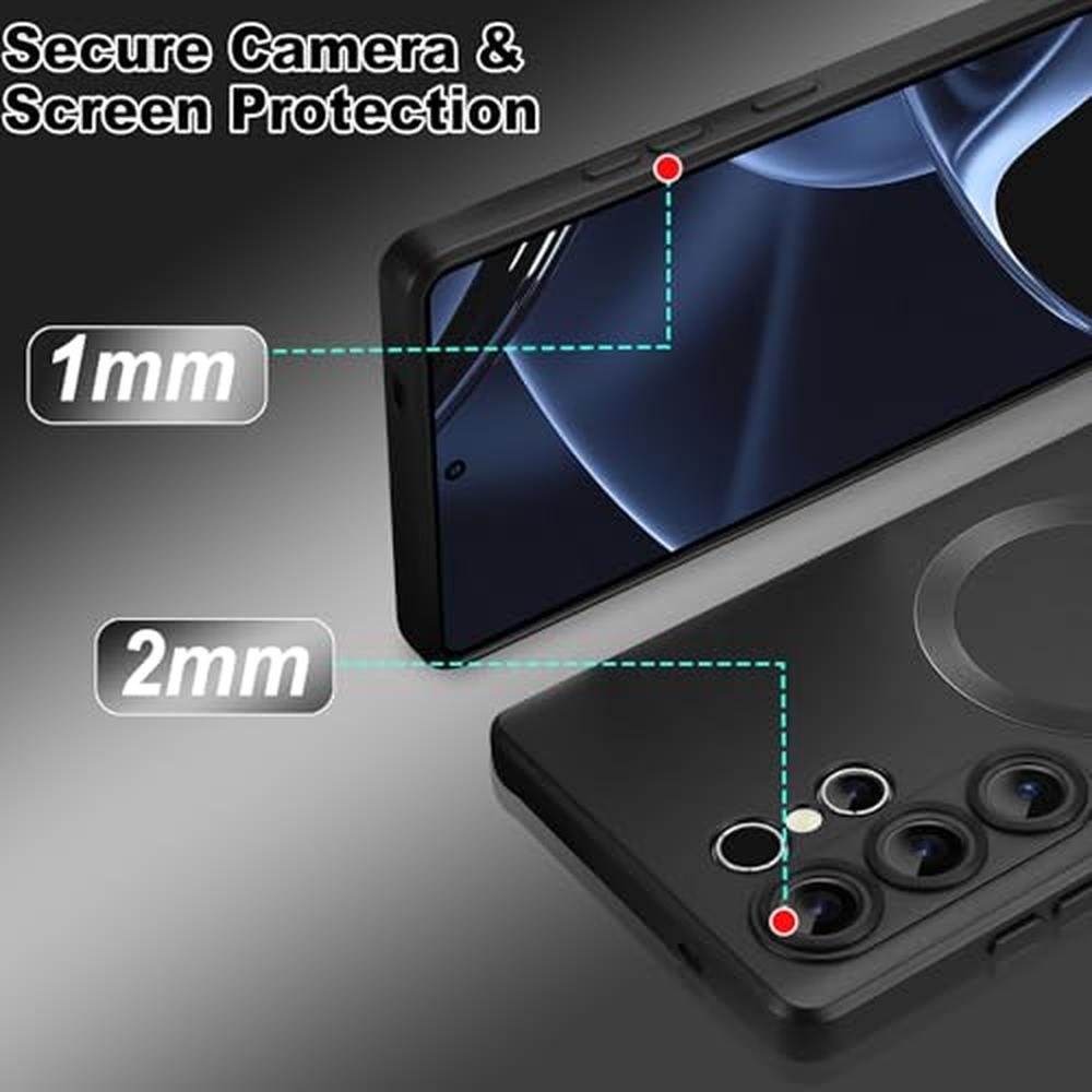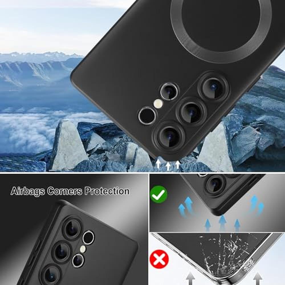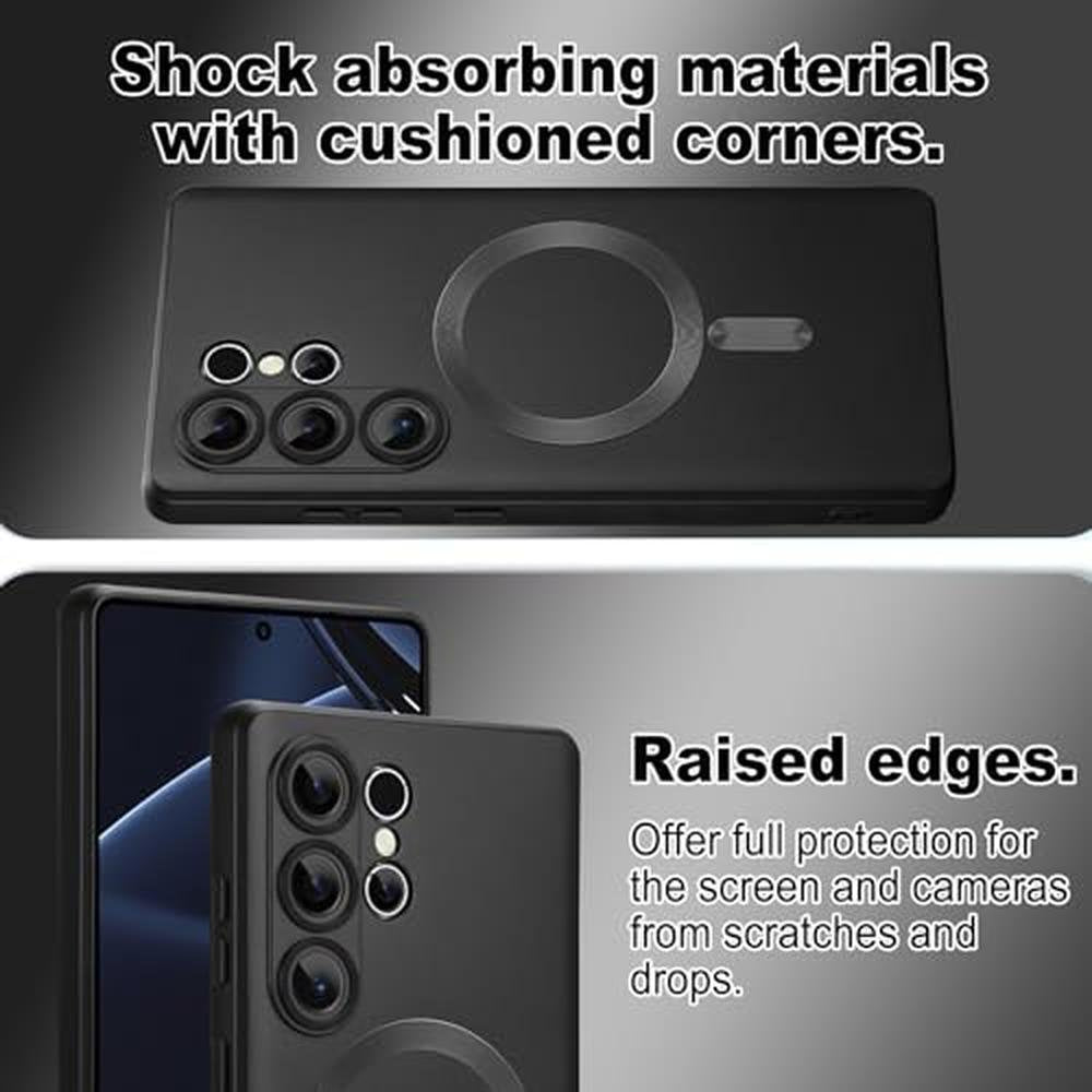 LSL Magnetic Case for Samsung Galaxy S25 Ultra for Women Men Compatible with Magsafe, Matte Luxury Metallic Luster Flexible TPU Shockproof Case - Black