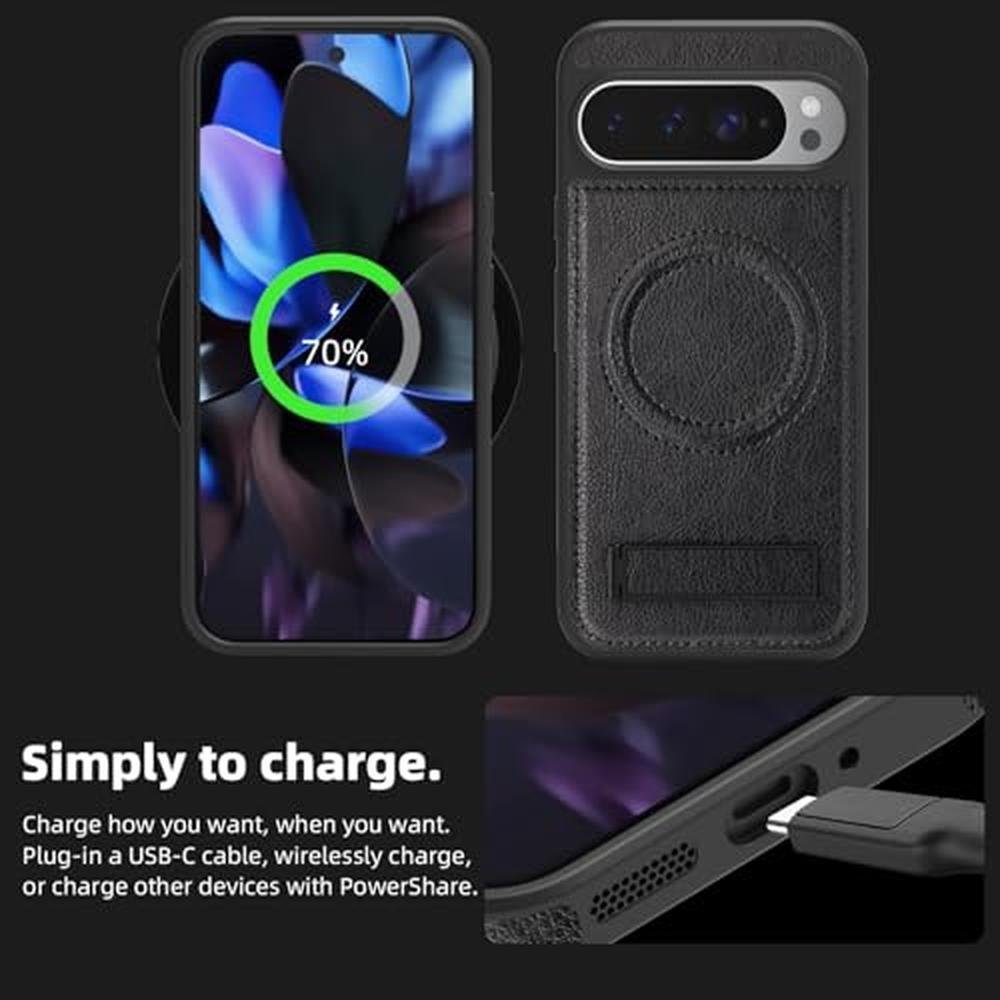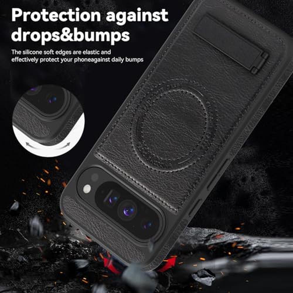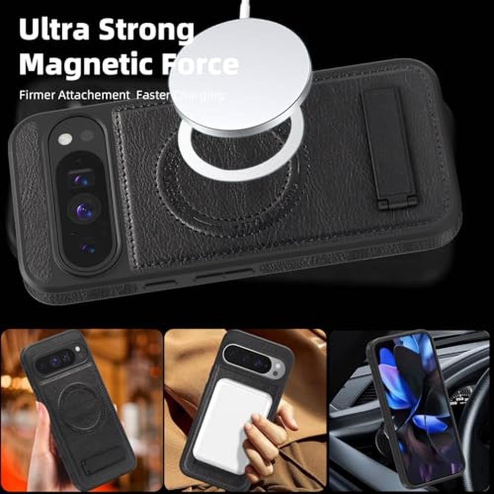 Lunivop for Google Pixel 9 Pro XL Case Leather [Compatible with Magsafe Wireless Charging] Magnetic Cover Stand Funda para Google Pixel 9 Pro XL 6.8 '' 5G 2025 Rugged Best Phone Cases Black