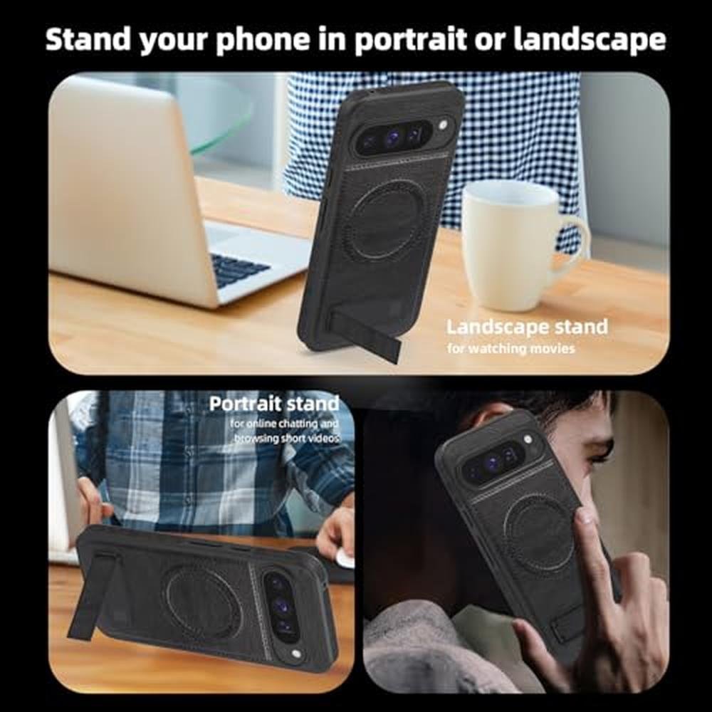 Lunivop for Google Pixel 9 Pro XL 5g 2025 Leather Back Cover Kickstand Soft Bumper
