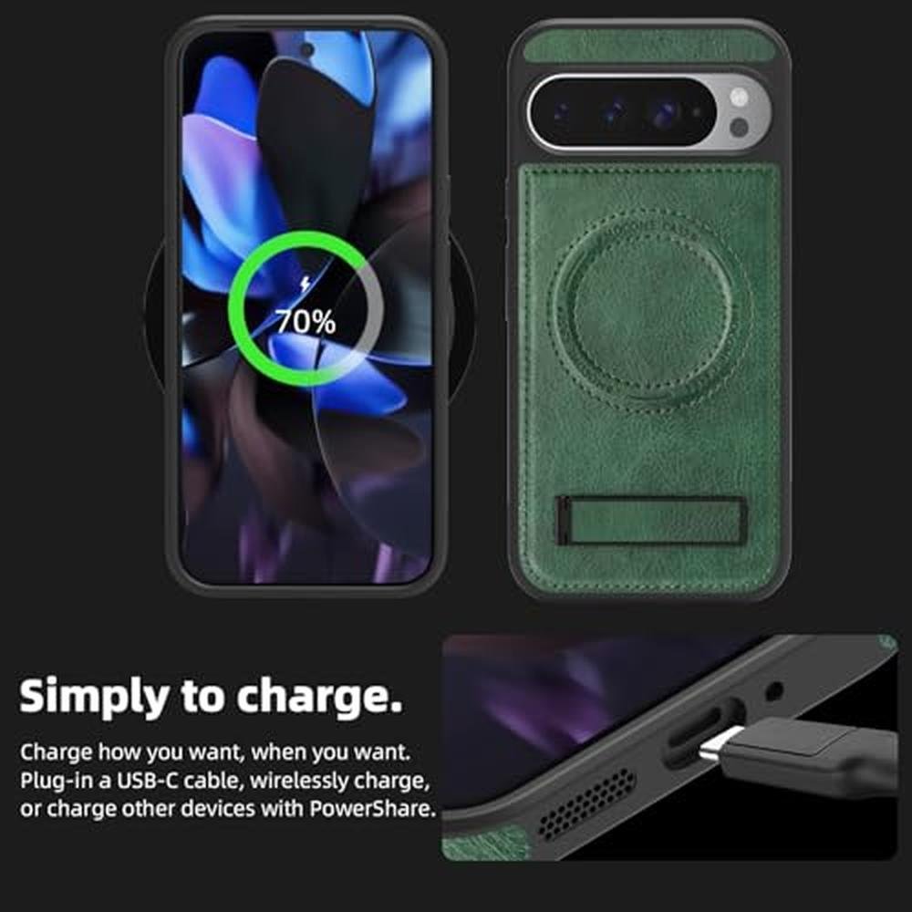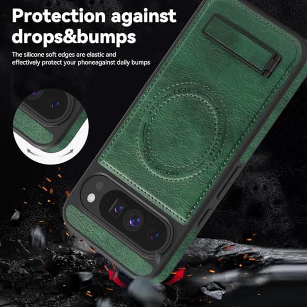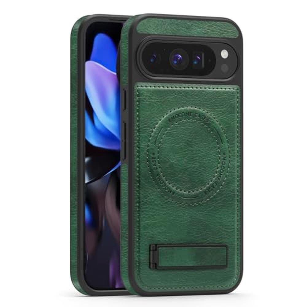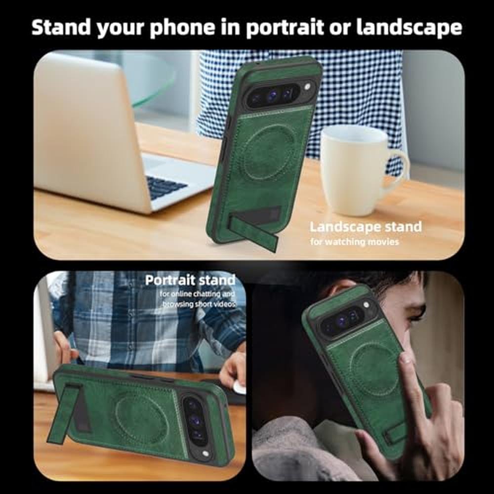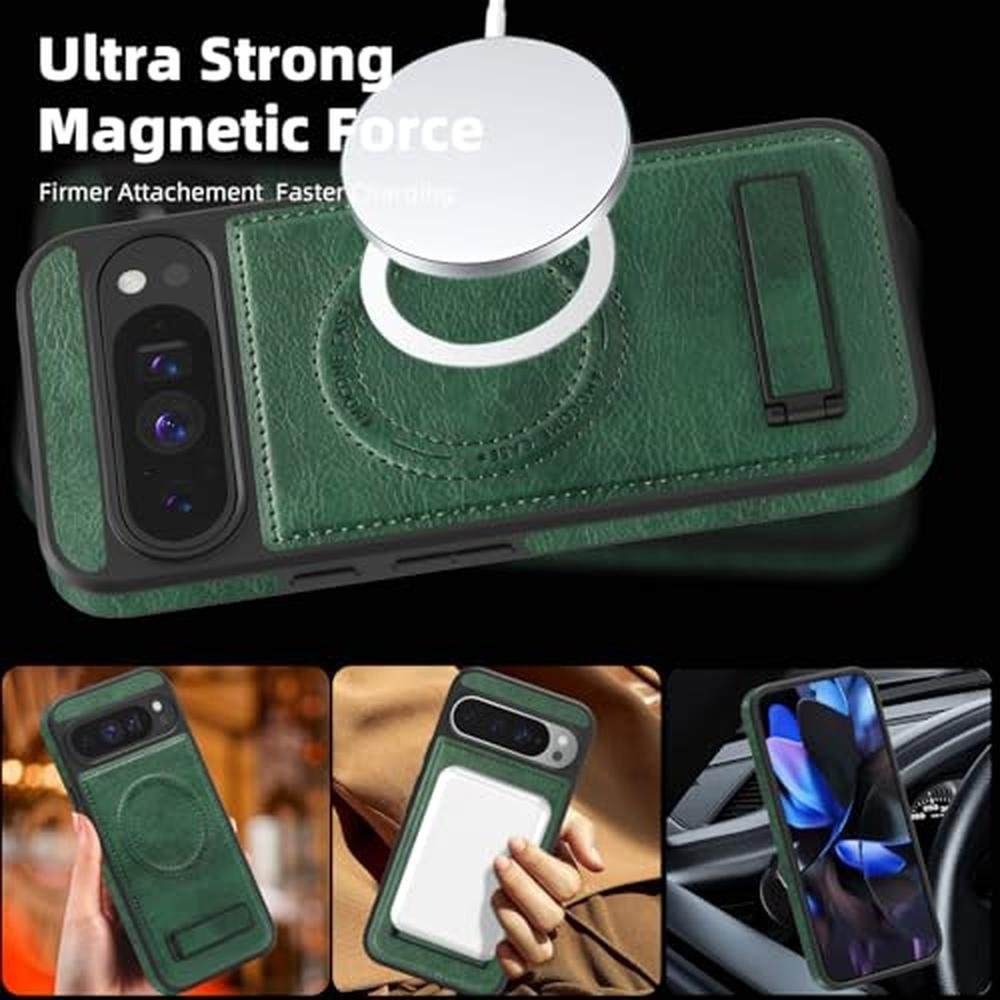 Lunivop for Google Pixel 9 Pro XL Case Leather [Compatible with Magsafe Wireless Charging] Magnetic Cover Stand Funda para Google Pixel 9 Pro XL 6.8 '' 5G 2025 Rugged Best Phone Cases Green