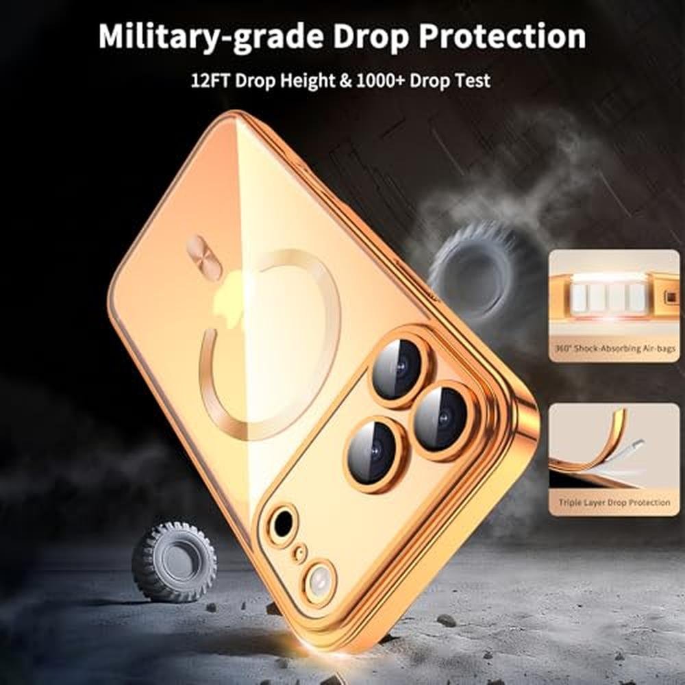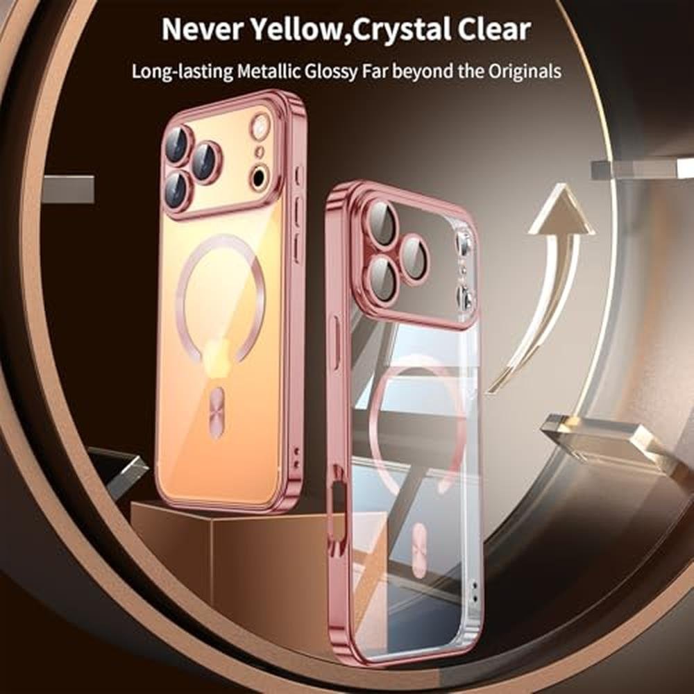 - METALLIC GLOSSY & CRYSTAL CLEAR: Only designed for iPhone 17 Pro Max 6.9 inch.The electroplating process gives this phone case a shiny metallic luster, With its German optical Say goodbye to unsightly yellowing and enjoy a case that always looks as good as new.just like your brilliant life that will never fade. Ideal for women and girls to showcase their distinctive style.