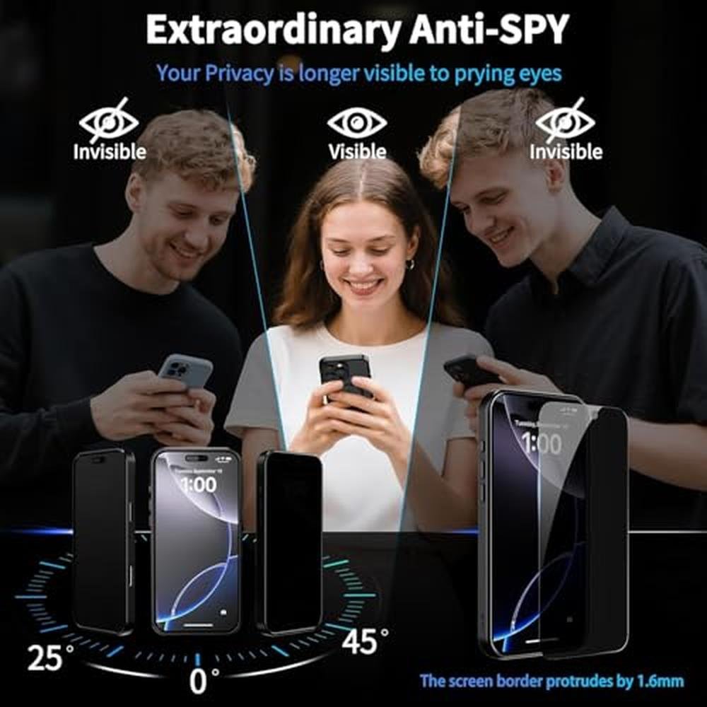 - Powerful Privacy Protection:This iphone 17ProMax privacy screen protector Advanced privacy filter blocks side views beyond 28, ensuring your iPhone 17 Pro Max screen remains visible only to you. ultra-tough tempered glass, it withstands up to 33 lb of force, protecting against drops, impacts, and scratches.