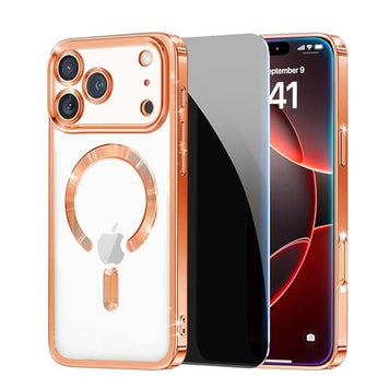 LWLFEKA Magnetic for iPhone 17 Pro Case with Privacy Screen Protectors [Non-Yellowing] Metallic Glossy Luxury Cover for Girl Women Men Cases Phone Case for iPhone 17Pro Cover-Cosmic Orange