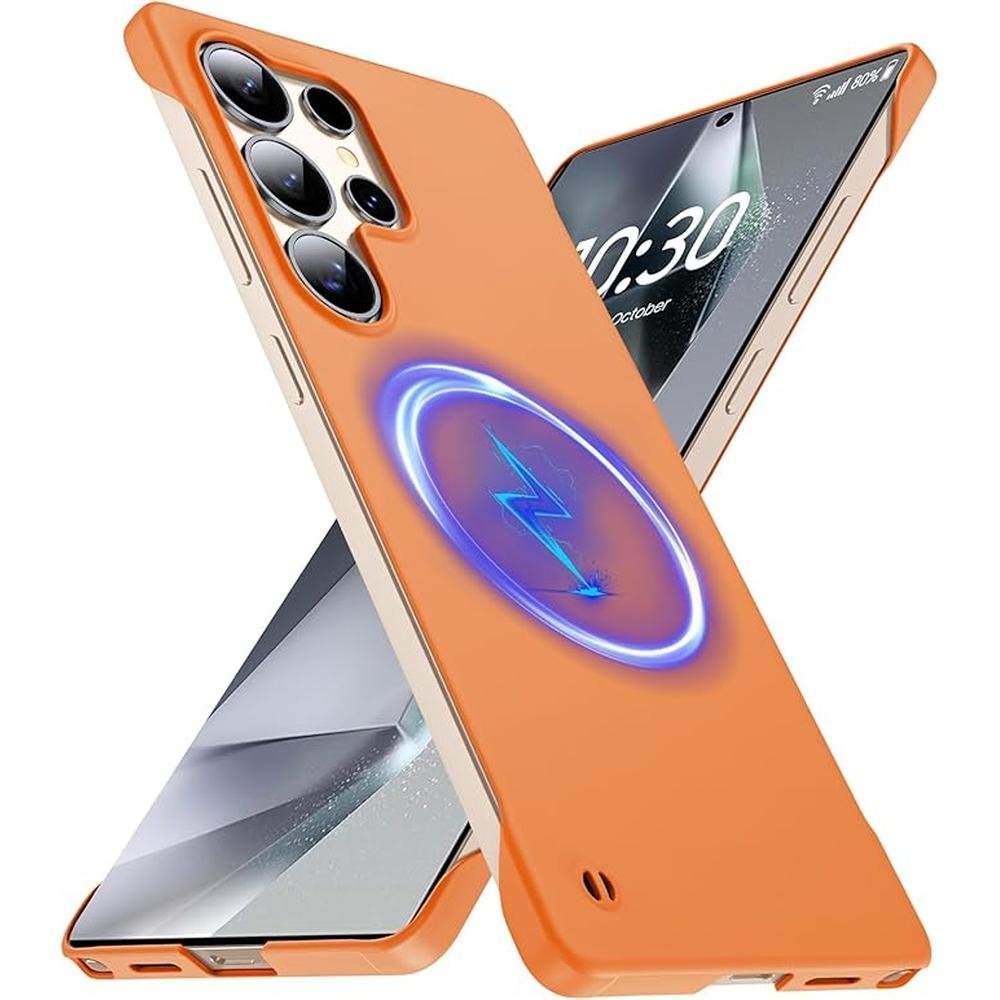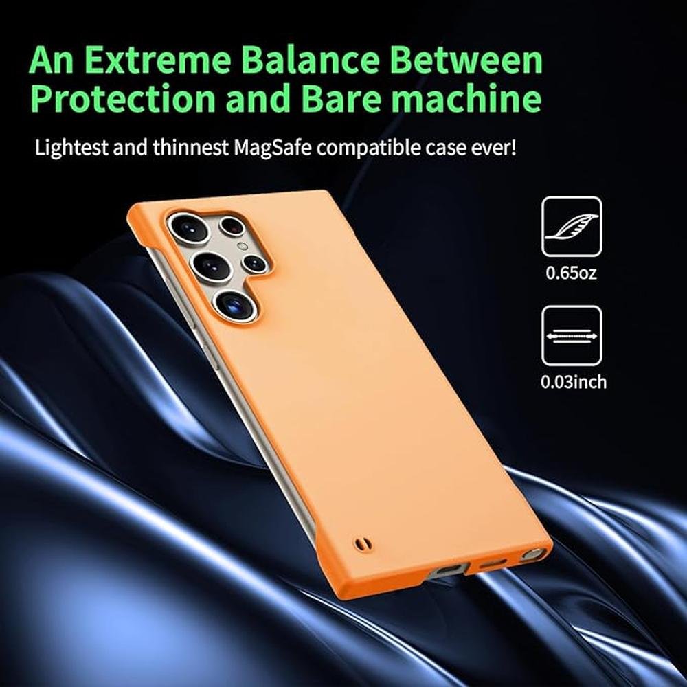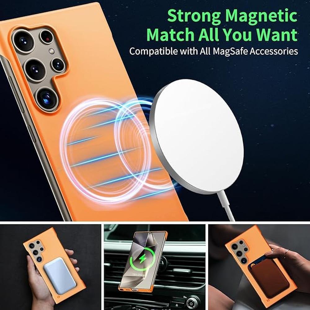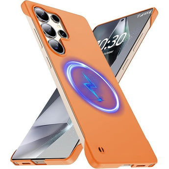 Magnetic Slim Case | Samsung Galaxy S25 Ultra Case | 6.9 Ultra-Thin Lightweight Durable Frameless Matte Hard for Magsafe Cover Case with Pull Ring Shockproof Non-Slip Rope Orange | Premium Protection