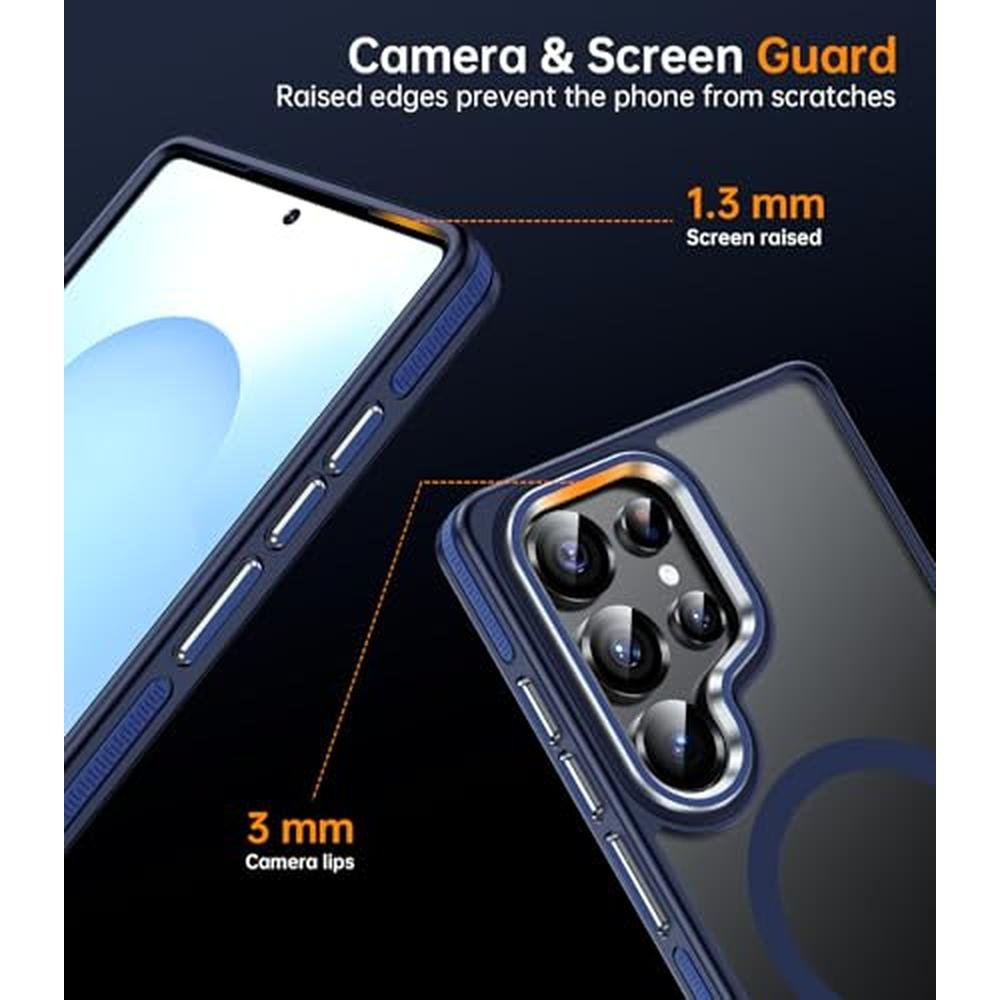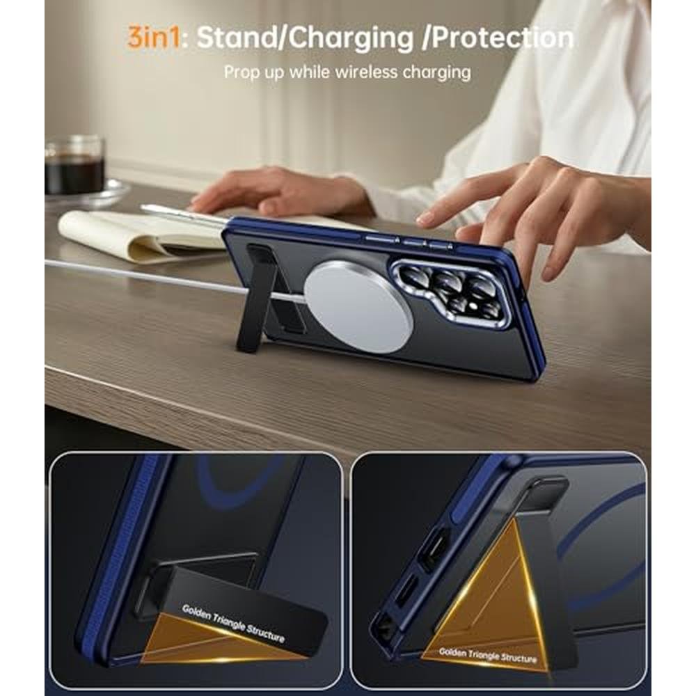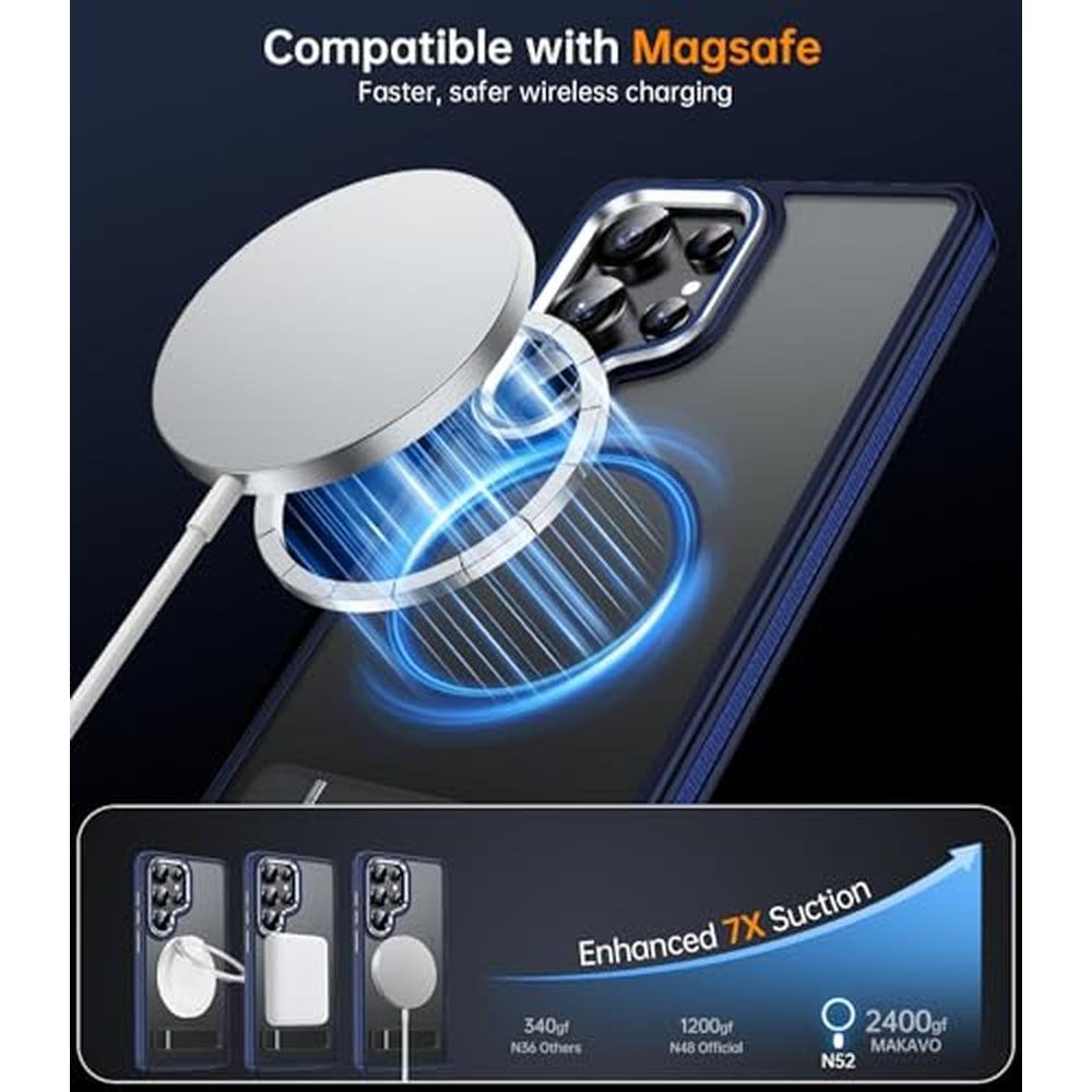 MAKAVO Magnetic for Samsung Galaxy S25 Ultra Case with Stand, Compatible with MagSafe, Slim Translucent Matte Military-Grade Drop Protection Phone Cover(Blue)