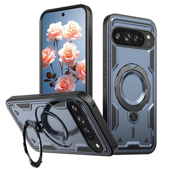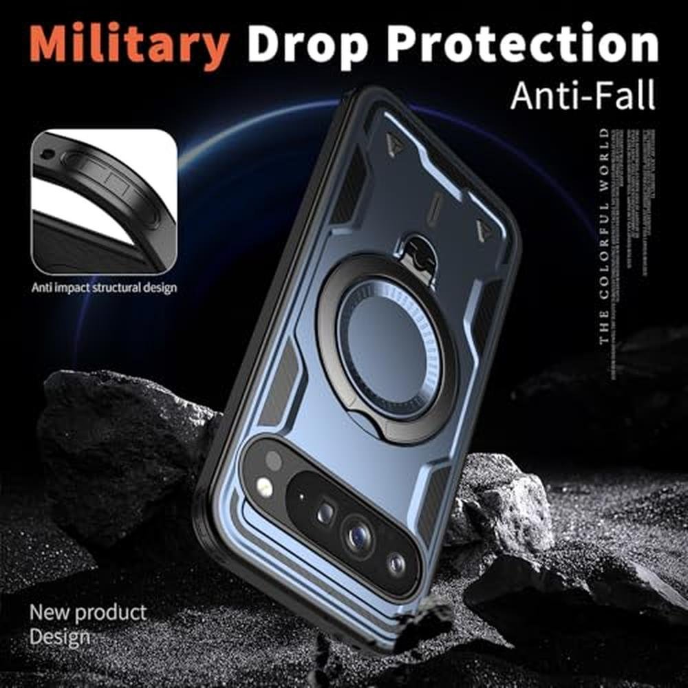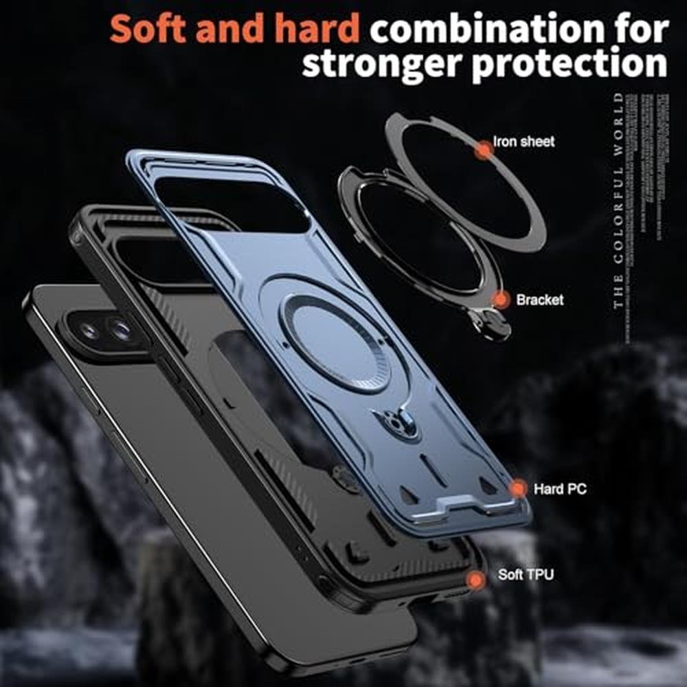 MEMAXELUS Case for Google Pixel 9 Pro XL Case Drop Protection with Magnetic Ring Holder Kickstand [Compatible with Mag-Safe] Double Shockproof Protective Phone Case for Google Pixel 9 Pro XL Blue TH