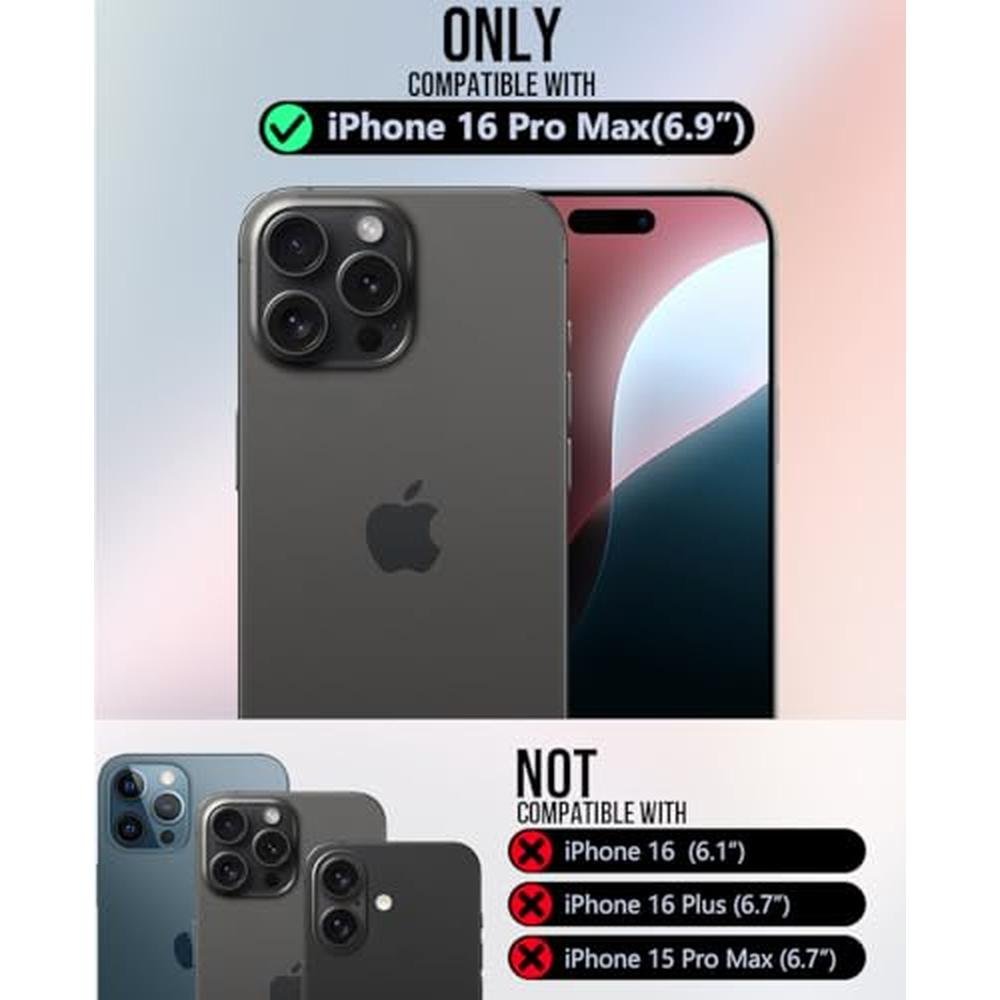 • Compatible with the 2024 iPhone 16 Pro Max model, this 6.9-inch case is perfect for those seeking a phone case that seamlessly blends functionality and fashion
