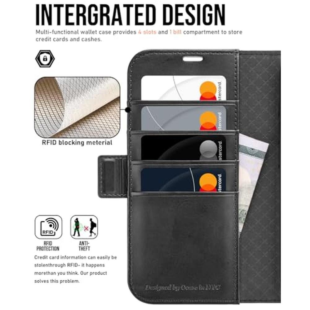 • The OCASE Compatible Wallet Case features a high-quality PU leather construction with card holders and RFID blocking technology