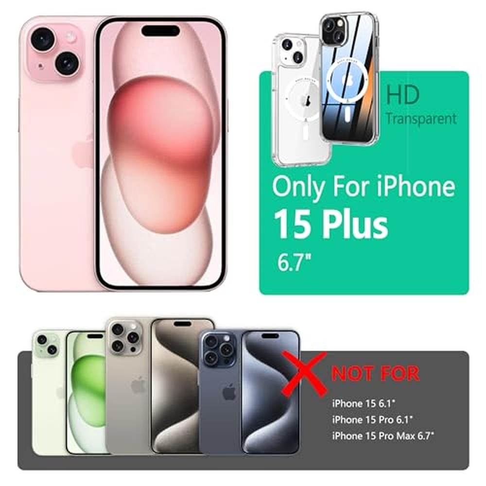 - High Transparency CoverDoes not spoil the original beauty of the iPhone 15 Plus. The high transparency of the case allows the natural color of the body to be reflected directly. The crystal clear TPU edge and PC panel are diamond cut, ensuring dust proof and anti-fingerprint.
