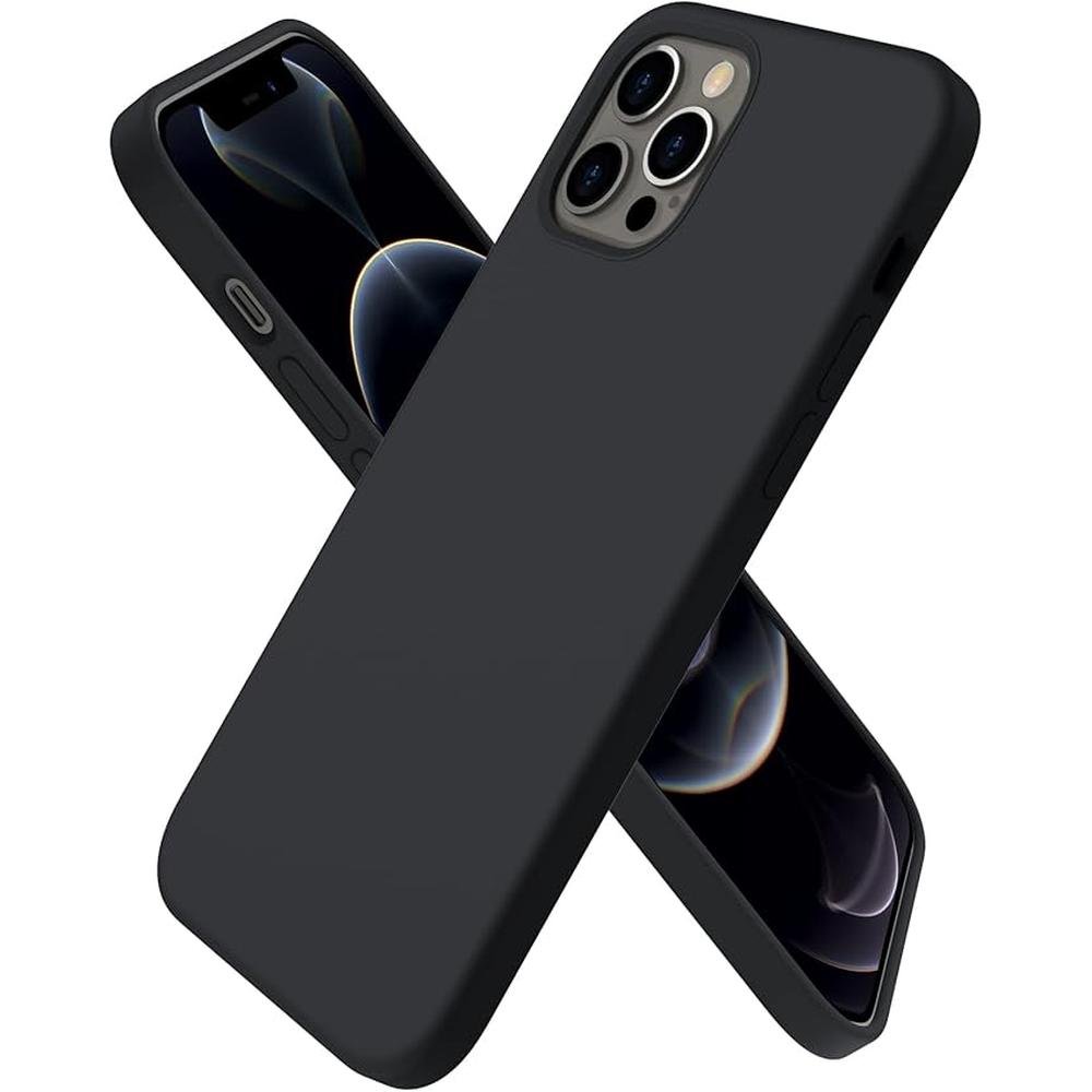 ORNARTO Compatible with iPhone 12 Case, Compatible with iPhone 12 Pro Case, Slim Liquid Silicone 3 Layers Full Covered Soft Gel Rubber Phone Case Cover 6.1 inch-Black