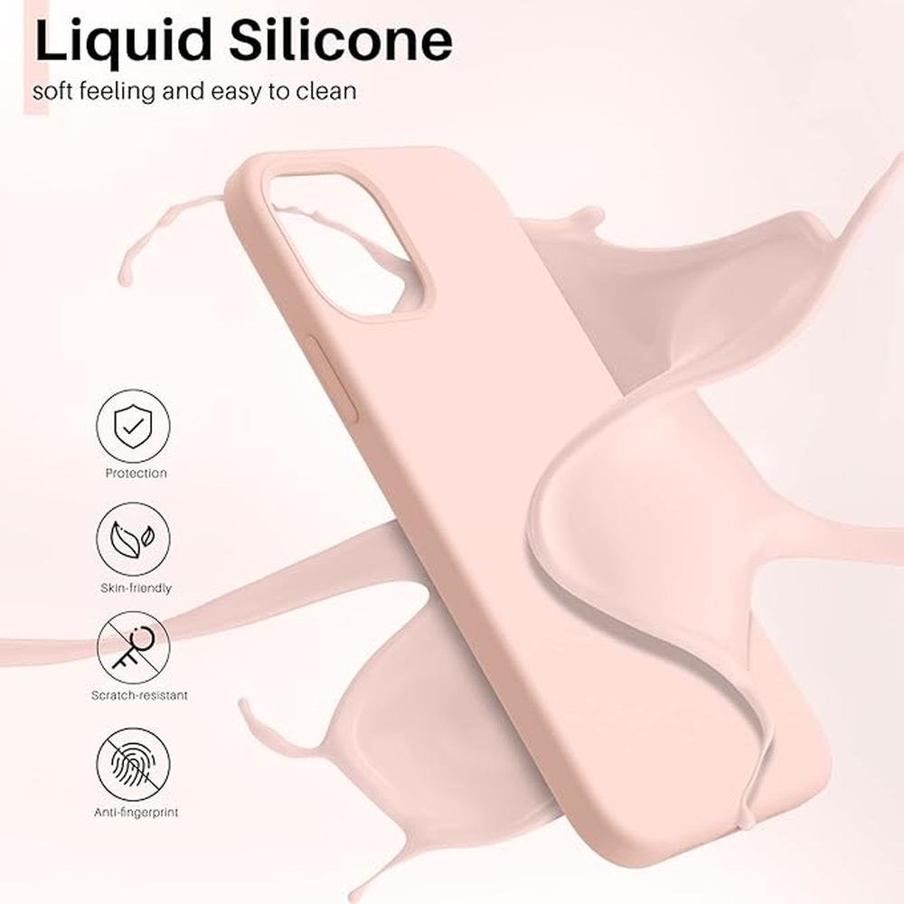 ORNARTO Compatible with iPhone 12 Case, Compatible with iPhone 12 Pro Case, Slim Liquid Silicone 3 Layers Full Covered Soft Gel Rubber Phone Case Cover 6.1 inch-Pink