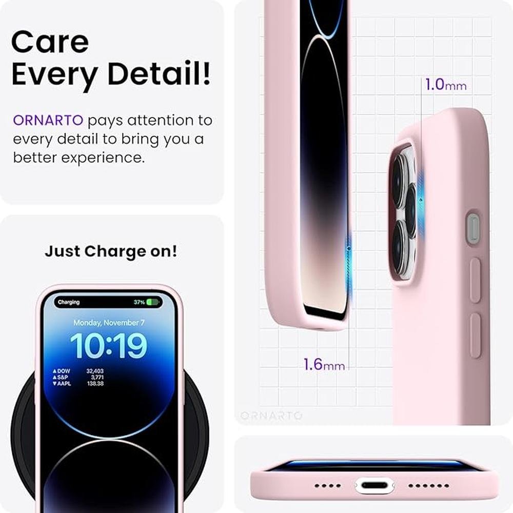 Case Ornarto | Ornarto iPhone 14 Pro Max Case 6.7 Slim Liquid Silicone 3 Layers Full Covered Soft Gel Rubber Phone Case | Premium Protective Cover, Chalk Pink