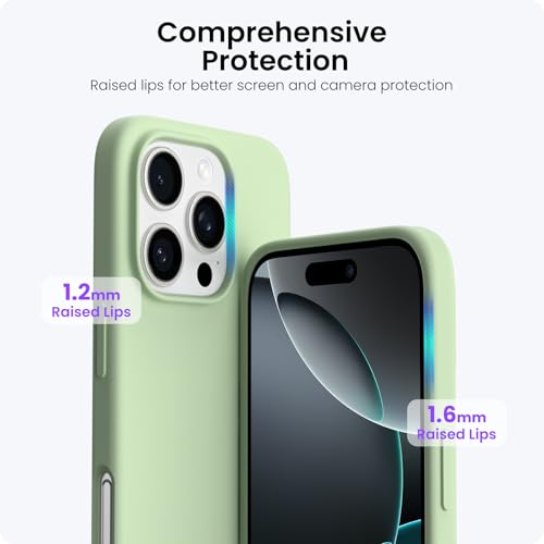 ORNARTO Compatible with iPhone 16 Pro Case 6.3", Slim Liquid Silicone 3 Layers Soft Gel Rubber Shockproof Protective Case with Anti-Scratch Microfiber Lining-Matcha