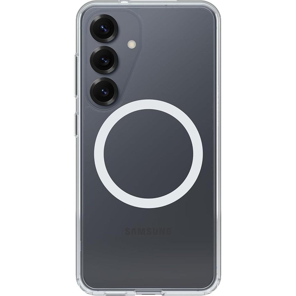 OTTERBOX SYMMETRY SERIES MAGNET CASE FOR SAMSUNG GALAXY S25 (NOT COMPATIBLE WITH, ULTRA, PLUS, EDGE, FE, MODELS) For 3X military standard drop defenses, go with Symmetry Series for wireless charging, our thinnest Samsung Galaxy S25 case yet. It's equipped with corners that absorb shock, dials in your look while hugging your devices curves, integrated magnets and built-in anchors for connecting phone straps. FEATURES: Ultra-sleek design that flows with the lines of your phoneAll-over texture delivers greater grip that helps prevents drops before they happenBuilt-in magnets support wireless charging and MagSafe accessoriesRigid case design with reinforced cornersTactile buttons feel just like your phonesBuilt-in anchors let you connect phone straps to prevent dropsScreen lip keeps display hovering safely off surfacesWorks with OtterBox screen protectorsSlim profile slips easily in and out of pocketsLimited lifetime warranty and hassle-free customer service WHAT'S IN THE BOX: OtterBox Symmetry Series Clear Magnet Edition Case COMPATIBILITY:Samsung Galaxy S25 DROP RATE:DROP+ | 3X as many drops as military standard (MIL-STD-810G 516.6) MATERIALS: Thermoplastic ElastomerPolycarbonate LayerMagnets WARRANTY: OtterBox limited lifetime warranty (see website for details). PACKAGING: Non-Retail Packaging.