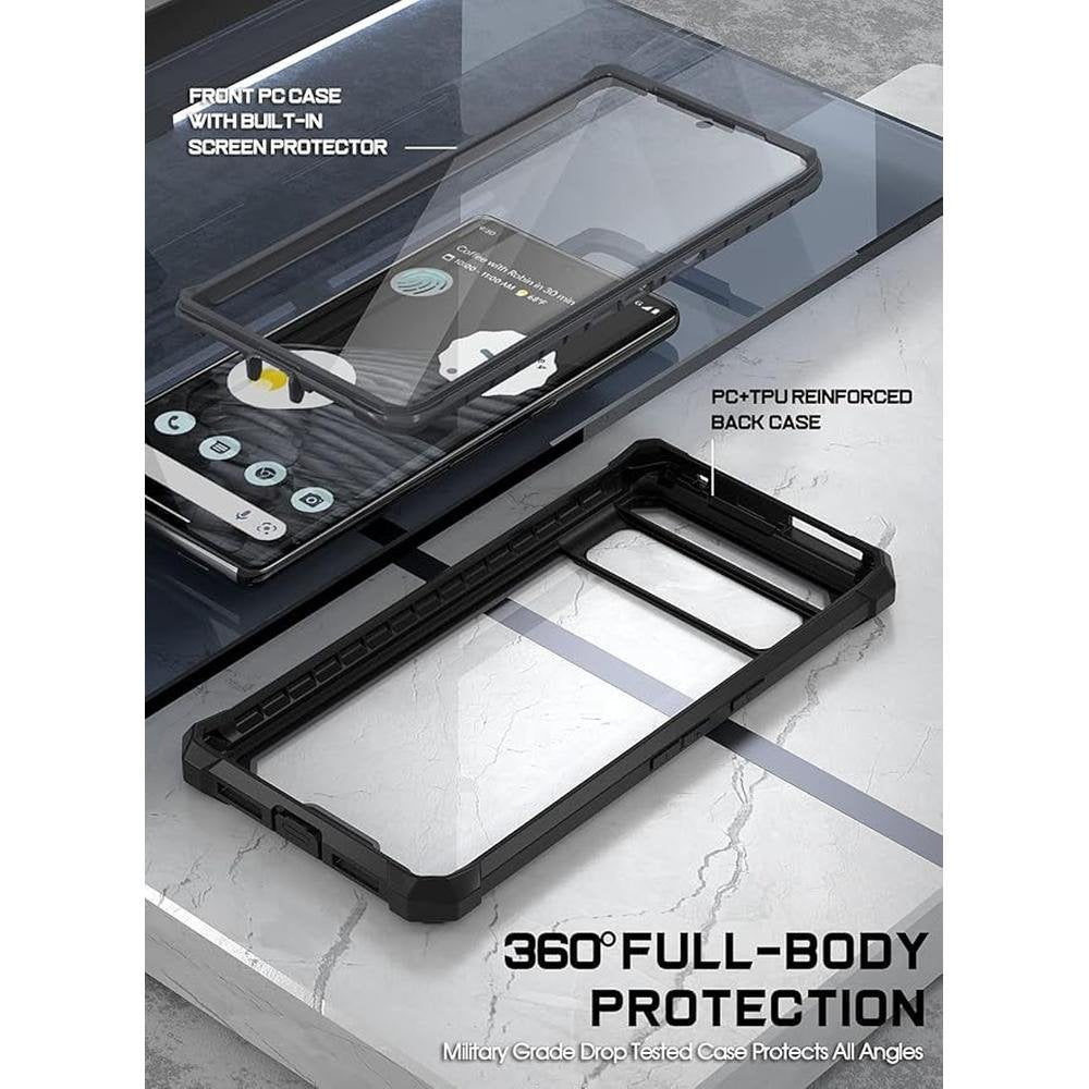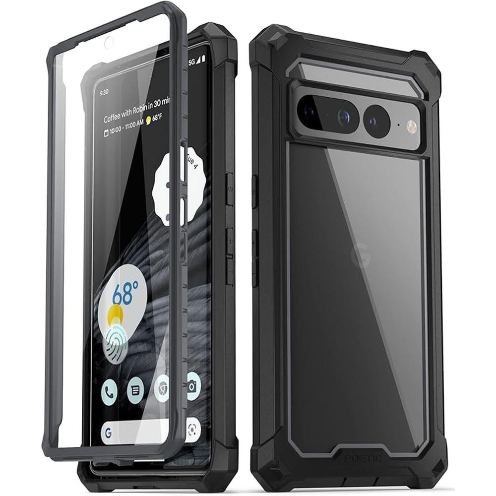 Poetic Guardian Case Compatible with Pixel 7 Pro 5G, Built-in Screen Protector Work with Fingerprint ID, Full Body Hybrid Shockproof Protective Rugged Clear Bumper Cover Case, Black/Clear