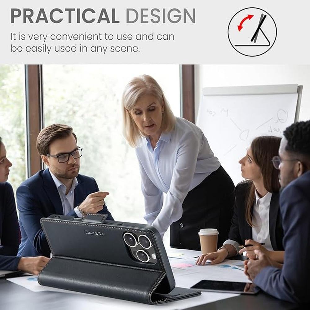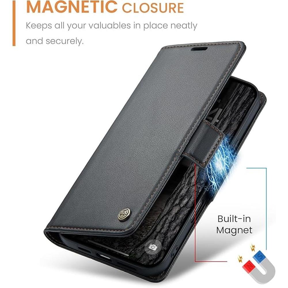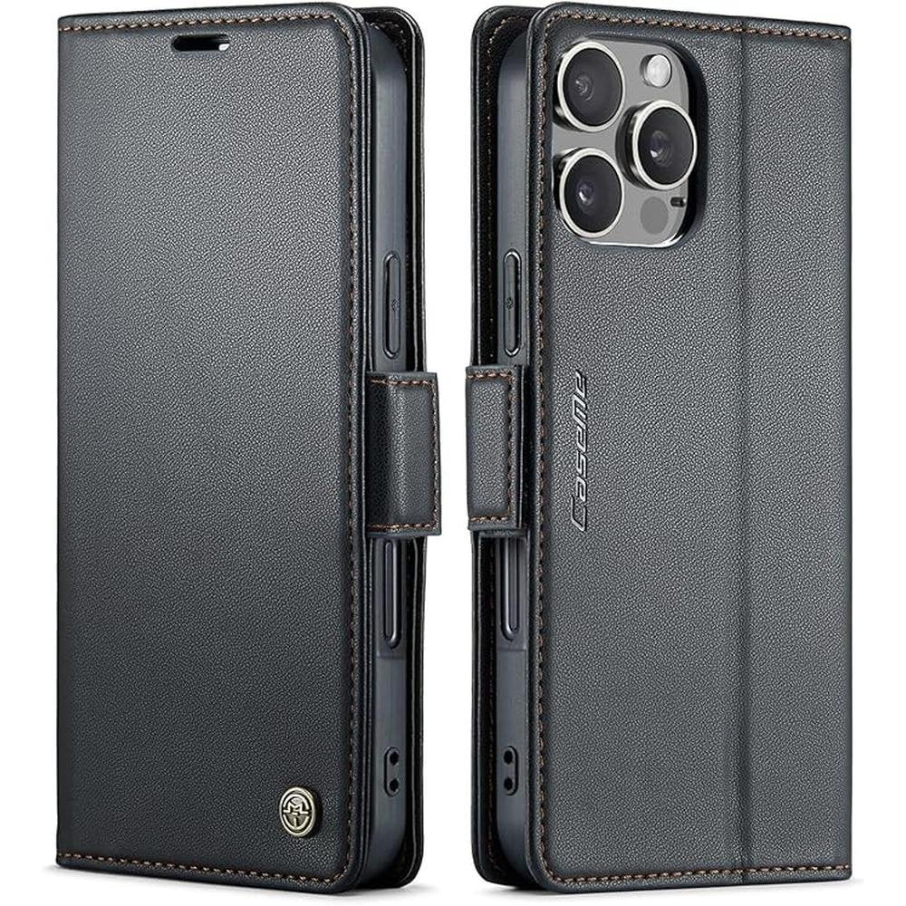 QLTYPRI Wallet Case for iPhone 16 Pro Max, Premium PU Leather Magnetic Flip Folio Case with RFID Blocking Credit Card Slots Kickstand Shockproof Protective Phone Case Cover - Black