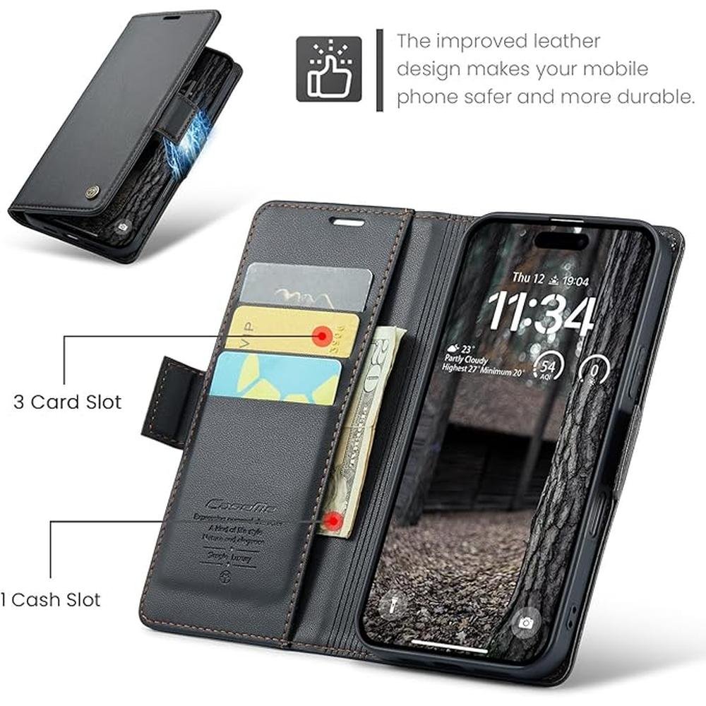 - The magnetic flip folio design allows for easy access to your phone and credit cards