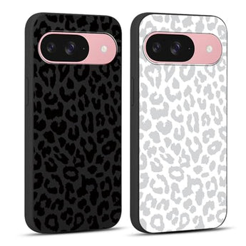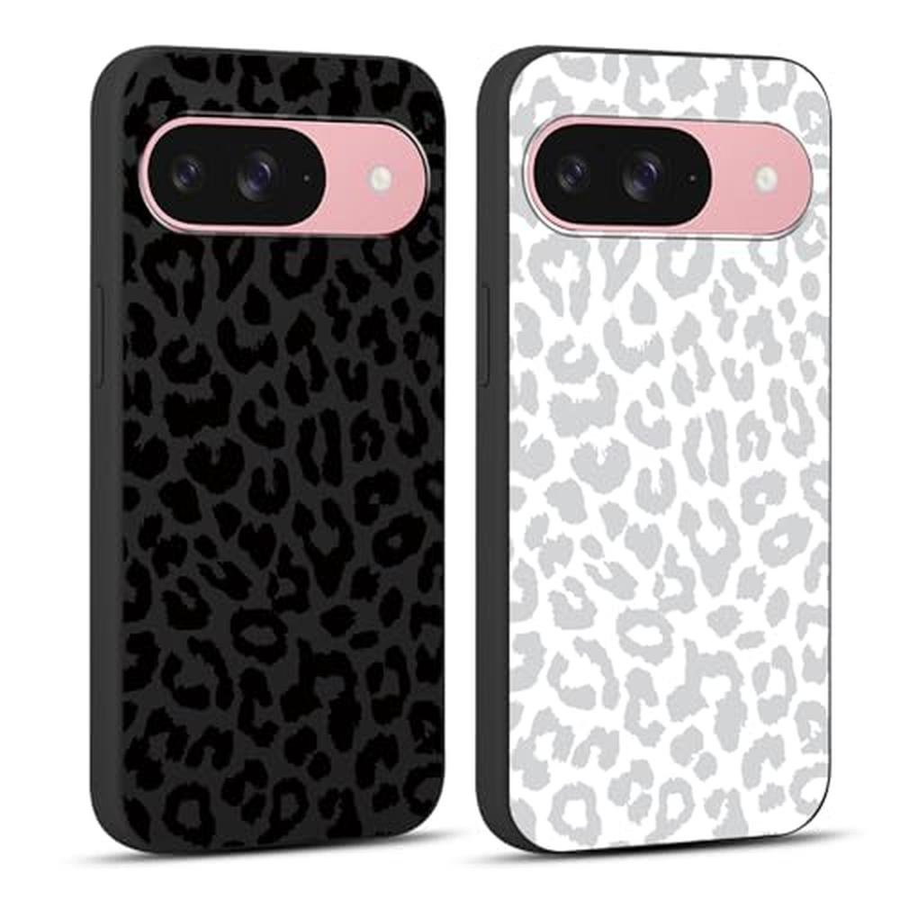 RUMDEY 2 Pack Cute Cheetah Print for Google Pixel 9 5G Phone Case 6.3", Luxury Leopard Pattern Design Cases Soft Silicone Slim TPU Shockproof Protective Bumper Cover for Women Girls - Black & White