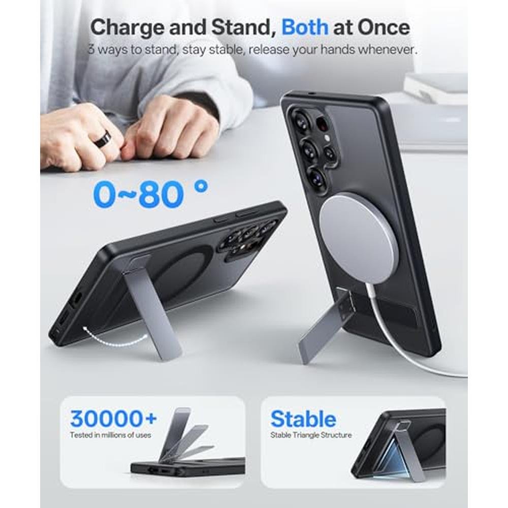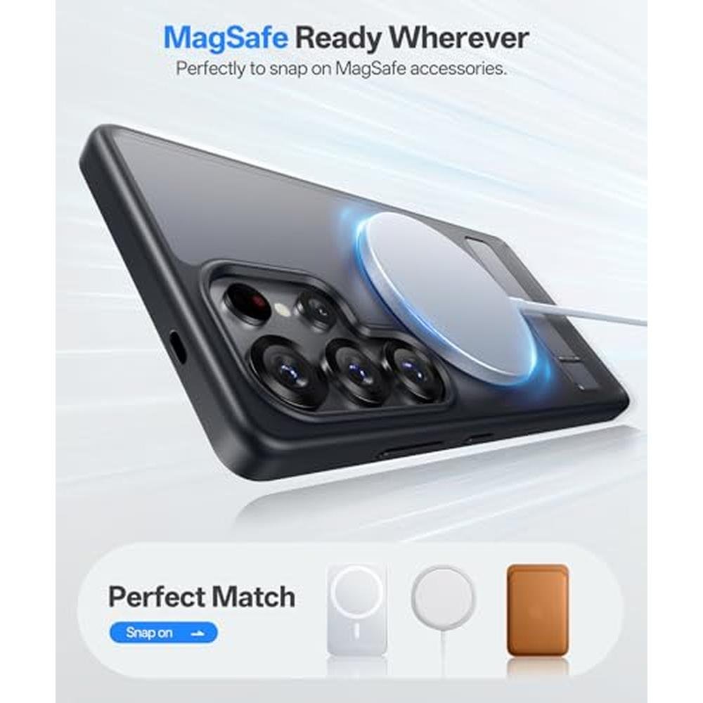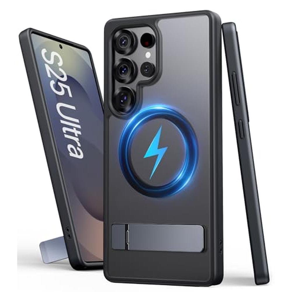 SIXBOX for Samsung Galaxy S25 Ultra Case, Compatible with MagSafe & Built-in Stand, Military Grade Drop, Matte Rugged Shockproof Translucent Phone Cover Case for S25 Ultra 6.9" 2025, Black