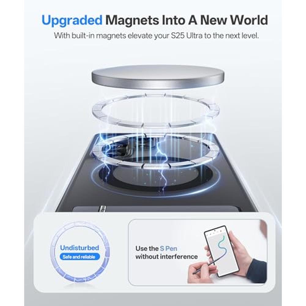 • [Upgraded Magnets Lock Magnetic Accessories] The case for S25 Ultra features magnets designed specifically for the S25 Ultra, strategically arranged to form a robust magnetic circuit, providing a stable magnetic force rated at N52. This Galaxy 25 Ultra case ensures a seamless and secure attachment of magnetic accessories, including wallets, kickstands, wireless chargers, which now effectively eliminates S-Pen interference issues, ushering in a new era of minimalist and efficient user experience