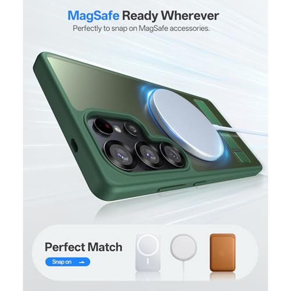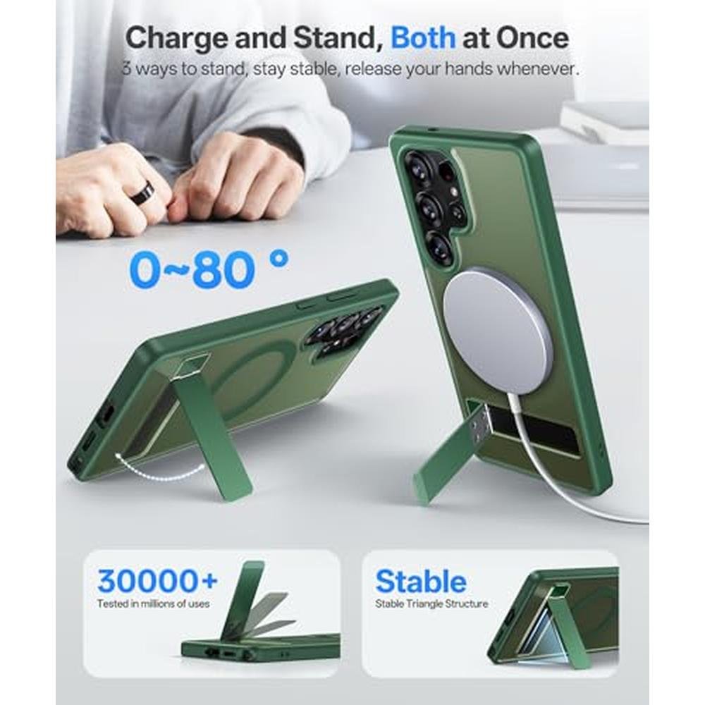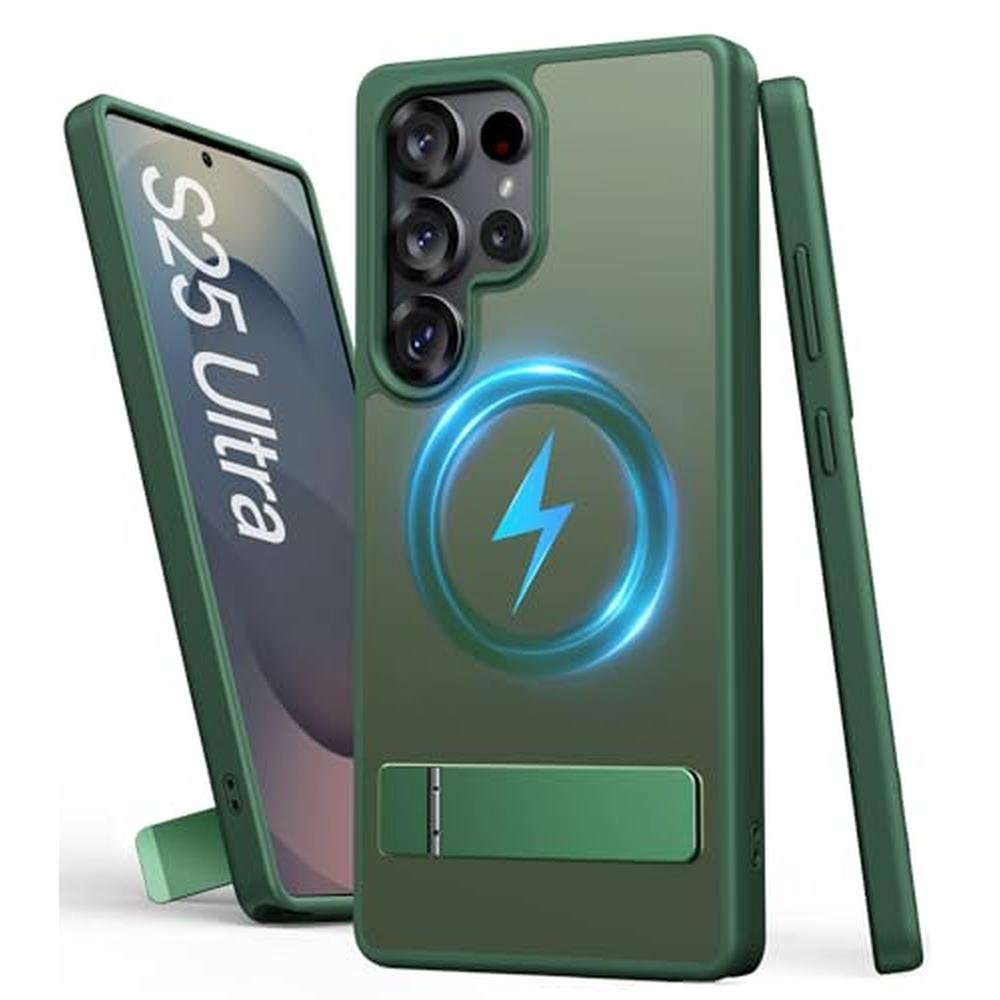 SIXBOX Magnetic for Samsung Galaxy S25 Ultra Case, Built-in Stand & Compatible with MagSafe, Military-Grade Protective Durable Rugged Matte Translucent Phone Case for Samsung S25 Ultra 2025, Green