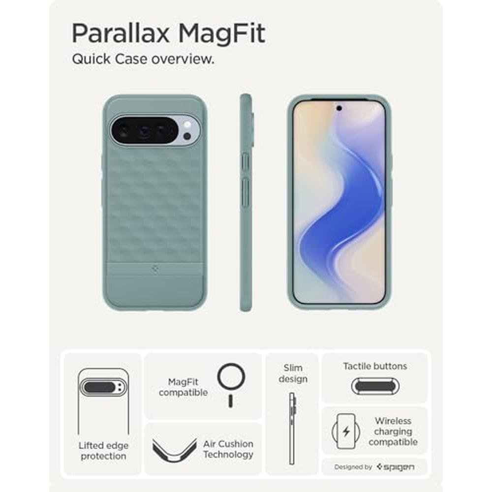 Upgrade your Google Pixel 10 or Pixel 10 Pro with the latest Spigen Parallax MagFit case, designed specifically for the Pixel 10 series and compatible with MagSafe accessories. This premium case offers a sleek and stylish design in a beautiful Sage Green color, providing a snug fit for your device. With Spigen's signature MagFit technology, you can easily attach and detach your MagSafe accessories, such as wallets or chargers, without damaging your case. The Parallax design features a unique, dynamic pattern that adds a touch of elegance to your phone. Whether you're a fan of the Pixel 10 or Pixel 10 Pro, this Spigen case is the perfect accessory to enhance your mobile experience.