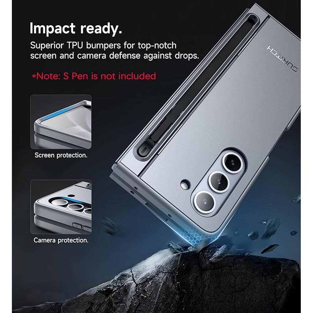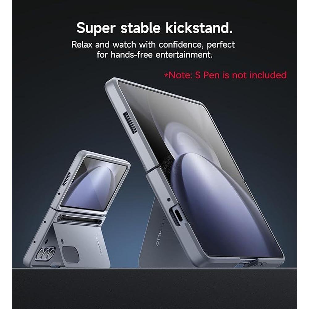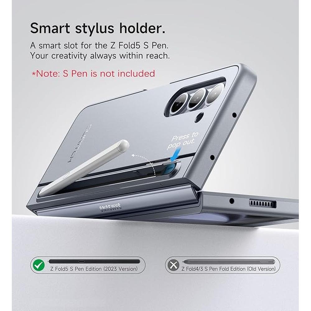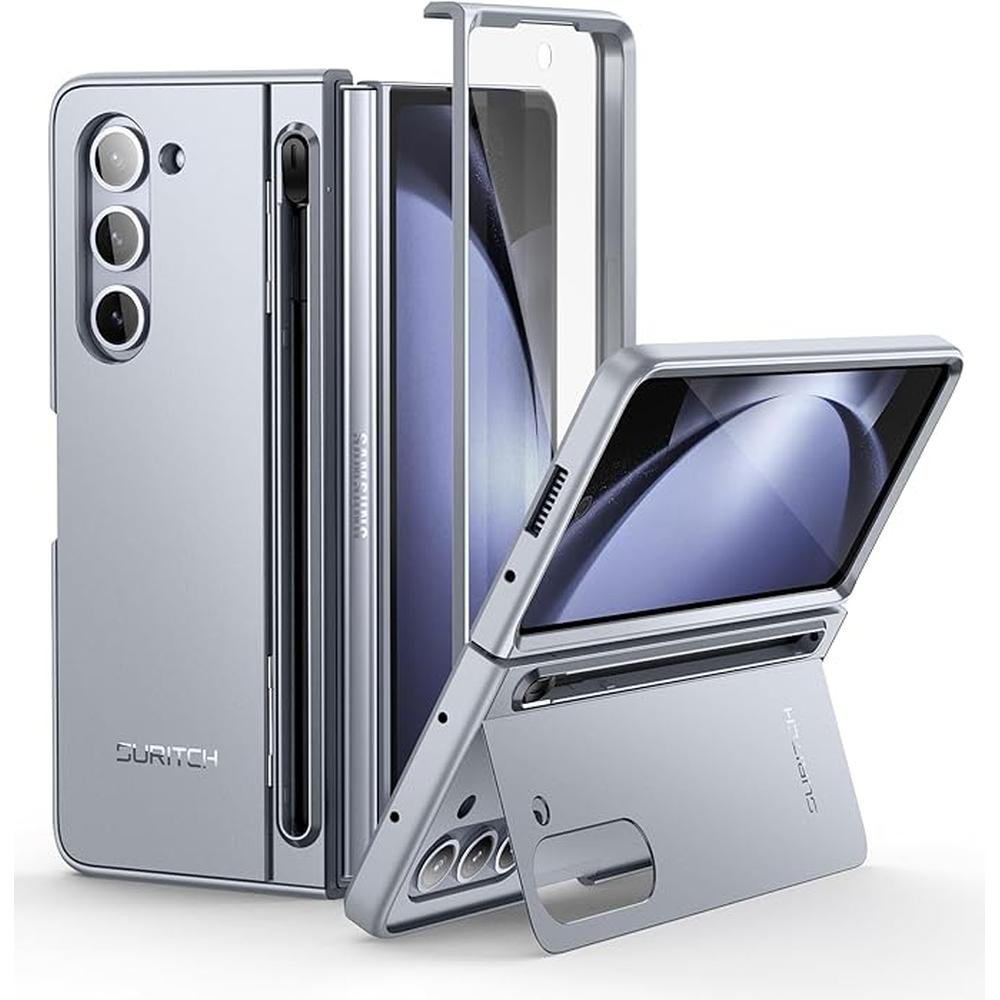 SURITCH for Samsung Galaxy Z Fold 5 Case with Kickstand and S Pen Holder [S Pen NOT Included], Phone Case for Z Fold 5 2023 -Gray Blue