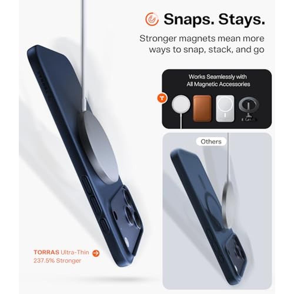 - Magnets Far Stronger than Ever: snap secure, stays put. There is no magnet like Slim-Fit Case magnet of TORRAS! If you are looking for a slim magnetic case for 17 Pro Max, this is your best choice. 38 high-density N52 magnets, delivering a powerful 19N of magnetic forceover twice the strength of standard magnetic cases (only 8N). The integrated magnetic ring is precision-locked and crack-resistant. It wont loosen or pop off, even on bumpy roads or during sudden stops