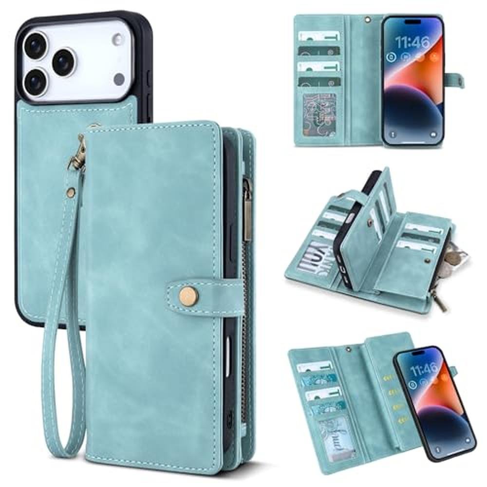 TwoHead Wallet Case Compatible with iPhone 17 Pro,Detachable,Magnetic,11 Cards Holder,PU Leather All-Round Protective Phone Case with Change Pocket(6.3 in,Blue)
