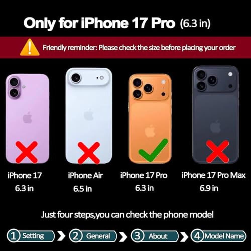 - Compatible Model: This stylish wallet phone case only compatible with iPhone 17 Pro(6.3 inch), not for any other model.Please be sure to check size before you order.How to Check: Open Settings - General - About - Model name.