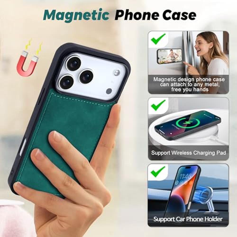 - Detachable Phone Case & Full Protection:Our magnetic phone case for iPhone 17 Pro can be easily taken out for use alone, or attached inside this leather wallet easy to carry,which protects the phone from drop damage and daily scratch.