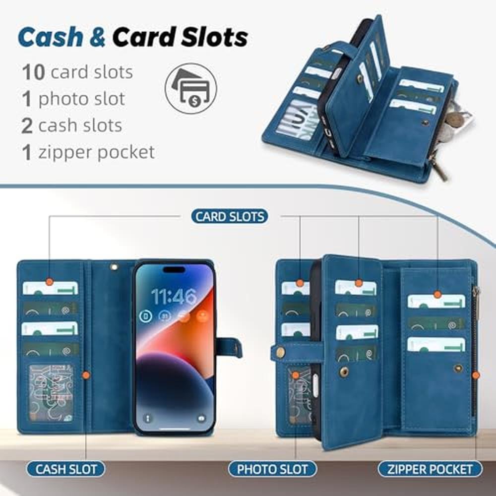 Tips!!! Be sure to check your cell phone model before placing your order. Compatible Model:Our phone case only compatible with iPhone 17 Pro 6.3inch Material: Faux leather ,Shockproof TPU Packing List:1 x zipper wallet,1 x detachable phone case for iphone 17 Pro,1 x wrist strap Style: novel, fashionable, cute, elegant Suitable for the Crowd: men and women Occasions:Daily carrying/travel/party/meeting/shopping/dating... Main Function: 11 card slots/2 bill pockets /Detachable wrist strap/phone all-round protection/Detachable leather phone protective cover Why Choose Us 1,Powerful Magnetic & Detachable Design:Our magnetic i Phone 17 pro case can be removed from your wallet and used on its own,or it can be securely installed in your wallet to provide 360 drop protection for your phone. 2,Novel Design:It not only protects your expensive cell phone, but also lets you carry the essentials to make life easier! Just a wallet phone case compatible with iphone 17 pro can hold your phone, credit cards, ID, change, bills. Easy to go out and convenient for shopping! 3,Detachable Design:Magnetic phone case for iPhone 17 pro can be taken out of the wallet and used separately, and because the back cover of the case is magnetic, it can be stuck to any metal surface. 4,Compatible with iPhone 17 pro Case:Buying it is equivalent to getting a wallet and a magnetic leather phone case for iPhone 17 pro at the same time, and the back cover of the case is magnetic, can be stick to any metal, also supports wireless charging , the soft leather case looks luxurious and protects your phone from scratches and damages. It allow you everything you need in the palm of your hands!!! TwoHead a brand you can trust!(Follow and visit TwoHead Store for more styles and models of phone case wallet)