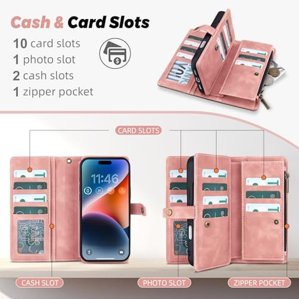 - Multi Card Slot Design: Compatible with iPhone 17 pro phone case has 11 card slots,2 cash slots and 1 zipper pocket,there's plenty of room in it for your ID card ,driver license,credit cards,bills,coins and a small amount of cash,which let you keep the essentials organized well.It's a good choice for traveling, shopping and partying