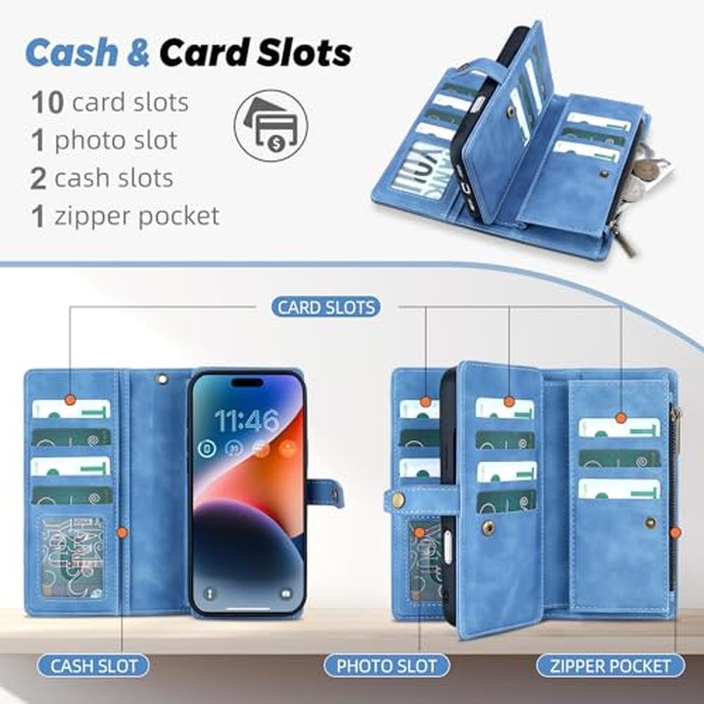 - Multi Card Slot Design: Compatible with iPhone 17 pro phone case has 11 card slots,2 cash slots and 1 zipper pocket,there's plenty of room in it for your ID card ,driver license,credit cards,bills,coins and a small amount of cash,which let you keep the essentials organized well.It's a good choice for traveling, shopping and partying