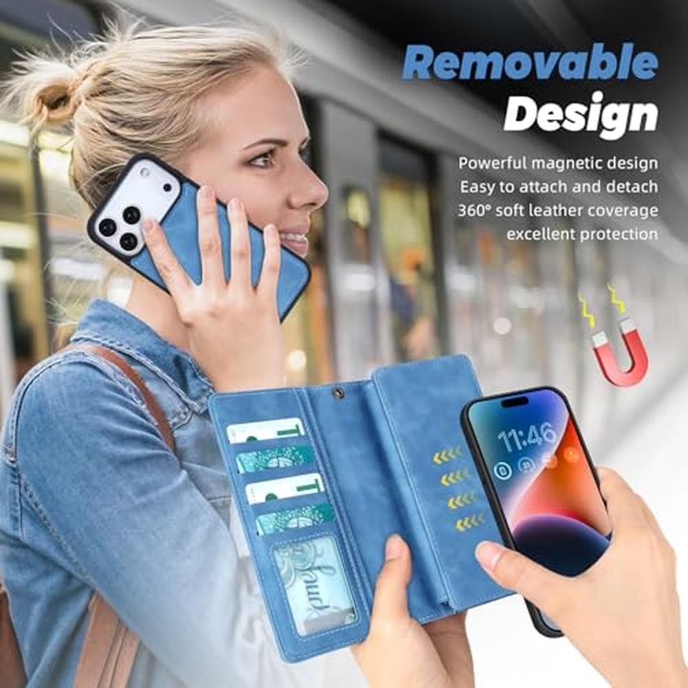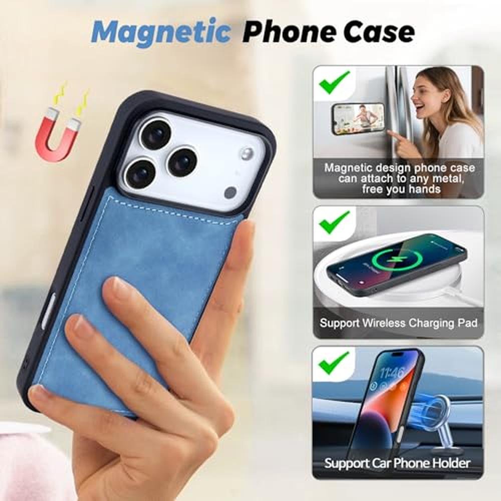 - Detachable Phone Case & Full Protection:Our magnetic phone case for iPhone 17 Pro can be easily taken out for use alone, or attached inside this leather wallet easy to carry,which protects the phone from drop damage and daily scratch.