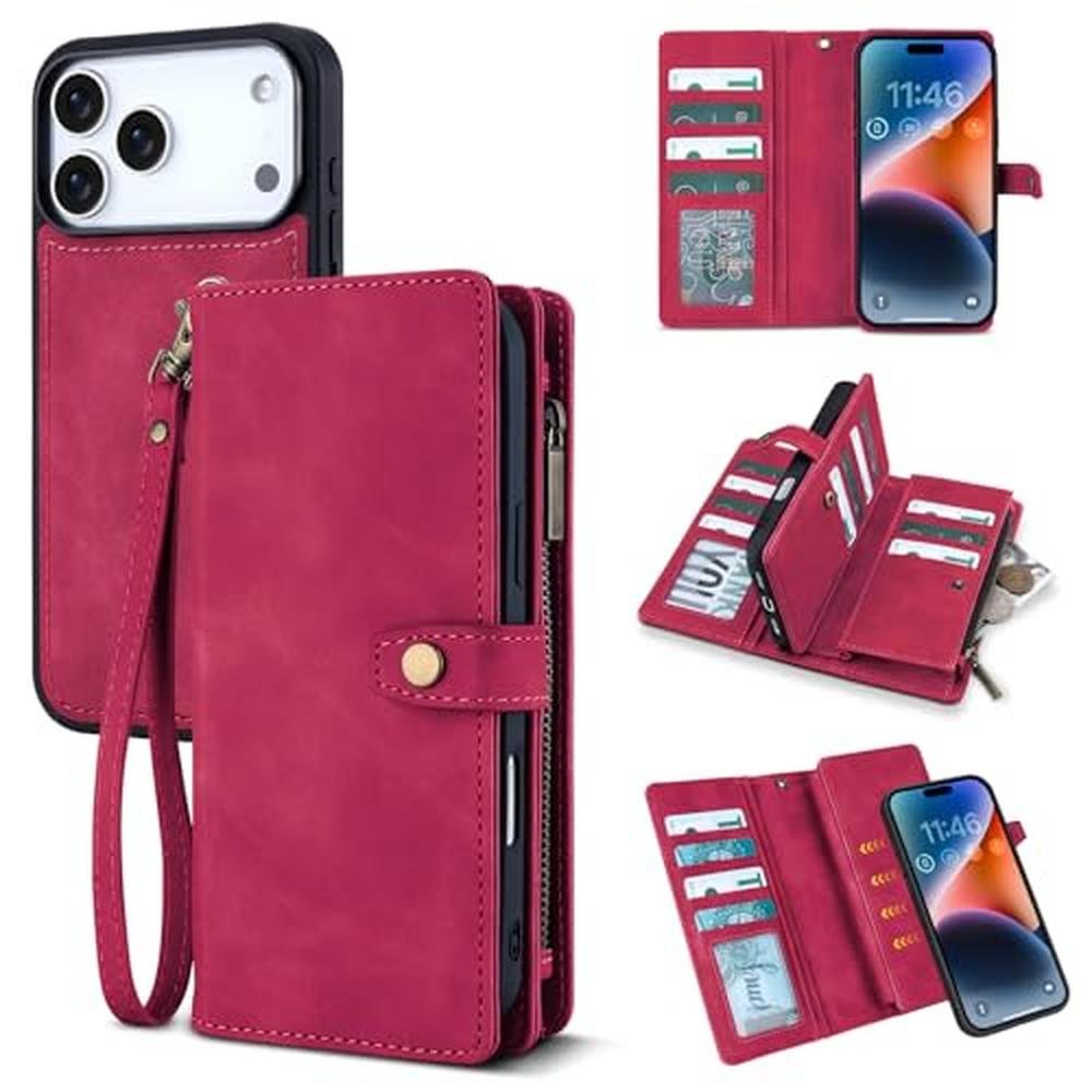 Tips!!! Be sure to check your cell phone model before placing your order. Compatible Model:Our phone case only compatible with iPhone 17 Pro 6.3inch Material: Faux leather ,Shockproof TPU Packing List:1 x zipper wallet,1 x detachable phone case for iphone 17 Pro,1 x wrist strap Style: novel, fashionable, cute, elegant Suitable for the Crowd: men and women Occasions:Daily carrying/travel/party/meeting/shopping/dating... Main Function: 11 card slots/2 bill pockets /Detachable wrist strap/phone all-round protection/Detachable leather phone protective cover Why Choose Us 1,Powerful Magnetic & Detachable Design:Our magnetic i Phone 17 pro case can be removed from your wallet and used on its own,or it can be securely installed in your wallet to provide 360 drop protection for your phone. 2,Novel Design:It not only protects your expensive cell phone, but also lets you carry the essentials to make life easier! Just a wallet phone case compatible with iphone 17 pro can hold your phone, credit cards, ID, change, bills. Easy to go out and convenient for shopping! 3,Detachable Design:Magnetic phone case for iPhone 17 pro can be taken out of the wallet and used separately, and because the back cover of the case is magnetic, it can be stuck to any metal surface. 4,Compatible with iPhone 17 pro Case:Buying it is equivalent to getting a wallet and a magnetic leather phone case for iPhone 17 pro at the same time, and the back cover of the case is magnetic, can be stick to any metal, also supports wireless charging , the soft leather case looks luxurious and protects your phone from scratches and damages. It allow you everything you need in the palm of your hands!!! TwoHead a brand you can trust!(Follow and visit TwoHead Store for more styles and models of phone case wallet)