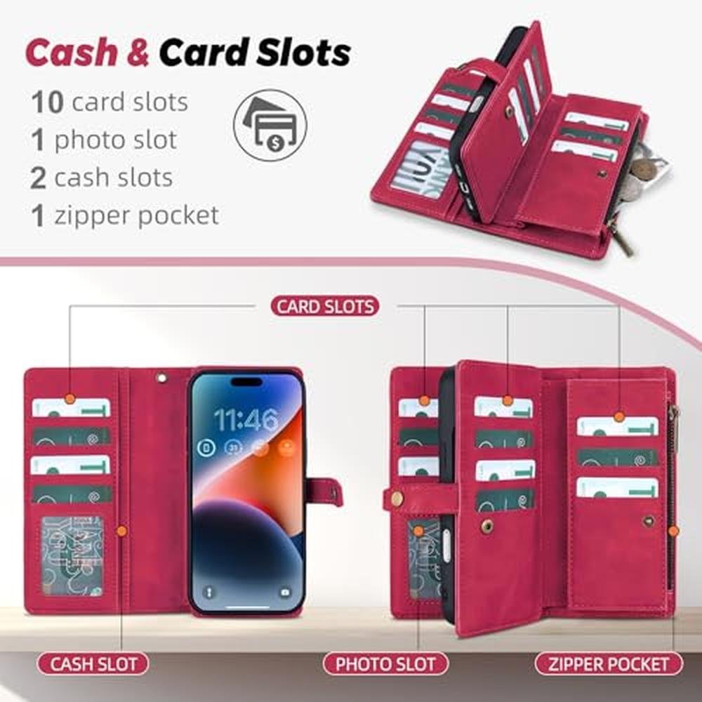 - Multi Card Slot Design: Compatible with iPhone 17 pro phone case has 11 card slots,2 cash slots and 1 zipper pocket,there's plenty of room in it for your ID card ,driver license,credit cards,bills,coins and a small amount of cash,which let you keep the essentials organized well.It's a good choice for traveling, shopping and partying