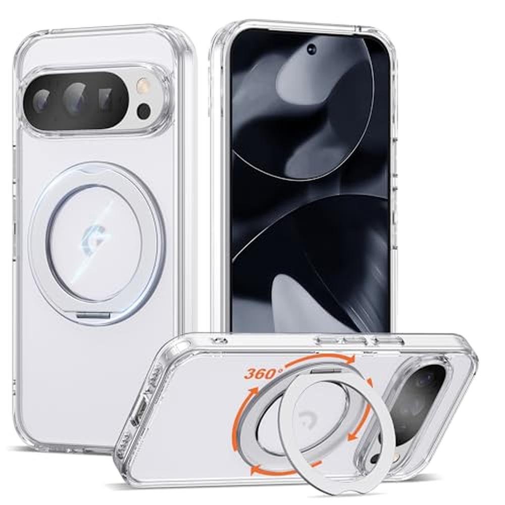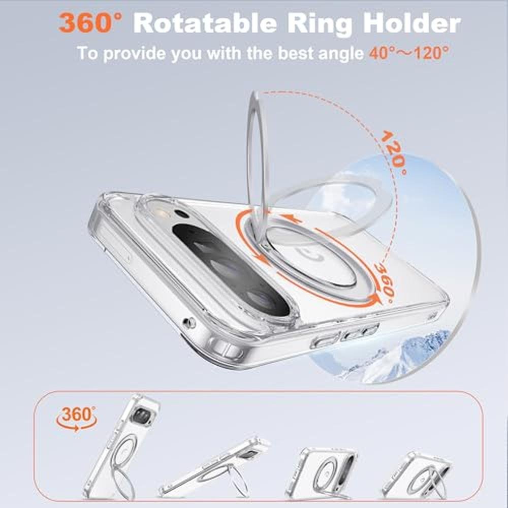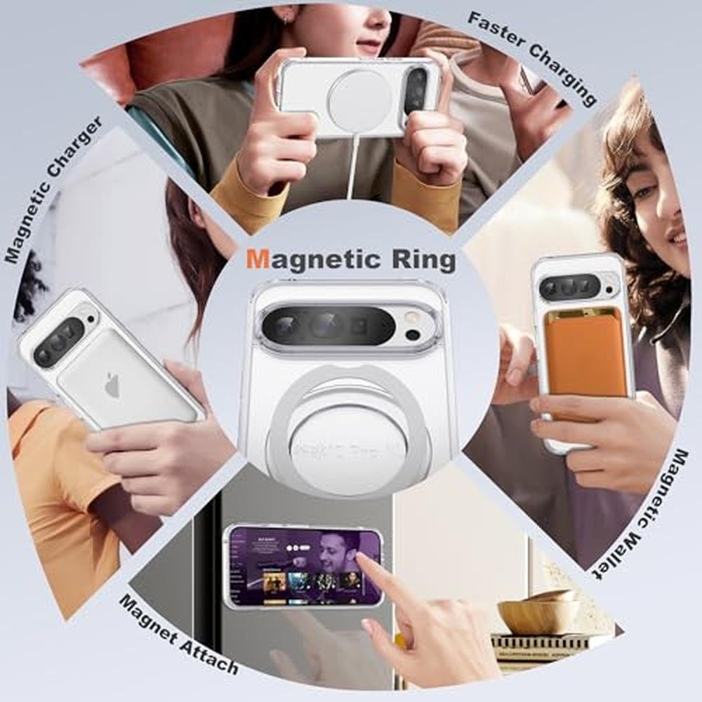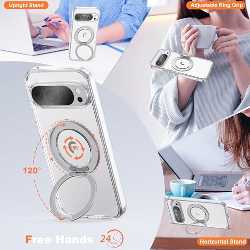 UGENINO Phone Case Compatible with Google Pixel 9/Pixel 9 Pro Case with 360 Magnetic Ring Stand [Compatible with Mag-Safe] Shockproof Phone Case for Google Pixel 9/Pixel 9 Pro 6.3", Clear