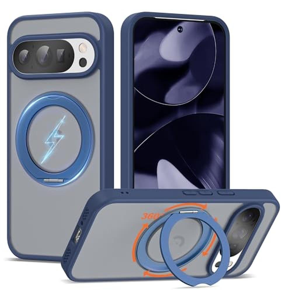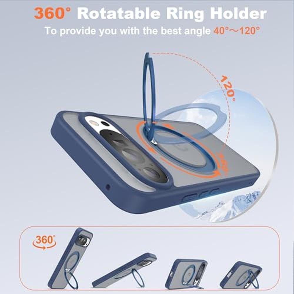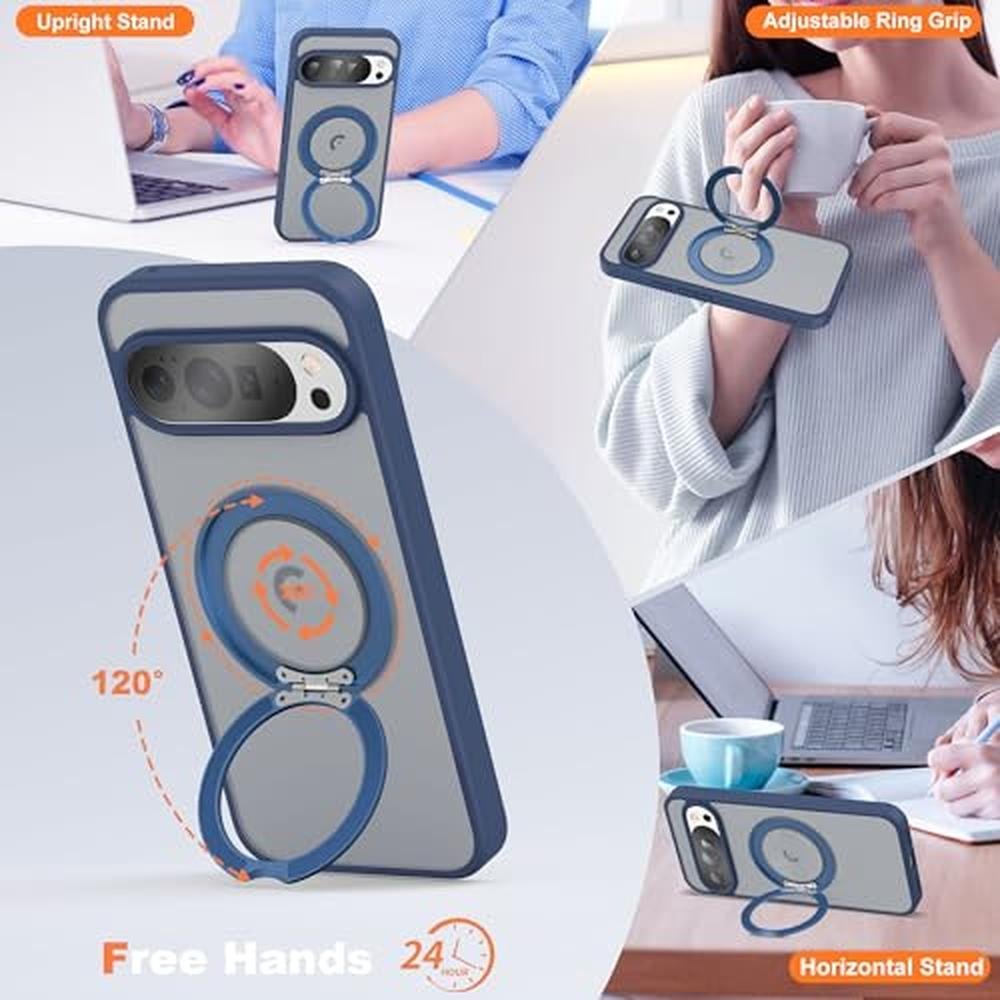 UGENINO Phone Case Compatible with Google Pixel 9/Pixel 9 Pro Case with 360 Magnetic Ring Stand [Compatible with Mag-Safe] Shockproof Translucent Phone Case for Google Pixel 9/Pixel 9 Pro 6.3", Blue
